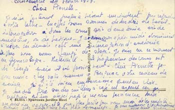 6/9/42 Cher Maurice Me voilà de nouveau à Blida, j'y ai retrouvé l'abondance et la chaleur...................... PS: Mais tu sais avec tous ses avantages l'Algérie ne vaut pas la France, surtout maintenant. |