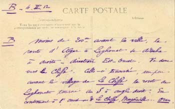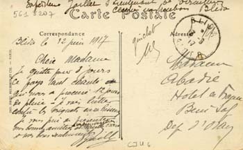 Blida le 12 juin 1917 Chère madame, Je quitte pour 3 jours ce pays tant chanté qui nous a procuré 12 jours de pluie. Je vais lutter contre les criquets................... |