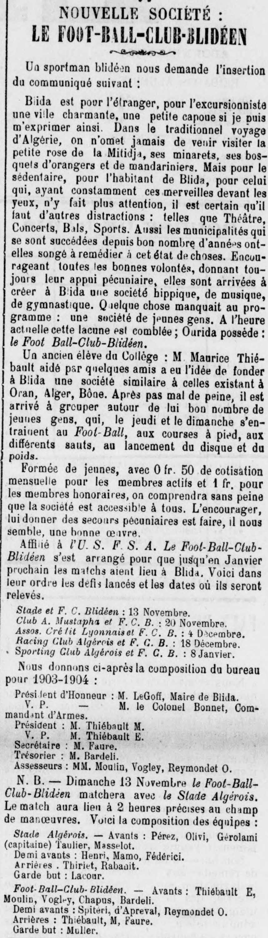 Retrouvez l'actualité sportive blidéenne des années 1912-1942 dans les journaux de l'époque |