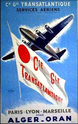 LIAISONS AERIENNES Dés 1925 une ligne postale Latécoère fonctionnait entre Oran et Toulouse avec escale à Alicante. Puis un hydravion quotidien transporta des passagers entre larrière port dAlger et létang de Berre avec escale à Alcudia. De nombreux raids sportifs reliait la métropole et lAfrique avec toutes les infrastructures que cela suppose. 1939 1945 : grand développement de laviation en Algérie devenue base de départ de larmée de lair anglo-saxonne avec 2 grands aéroports : MAISON BLANCHE à Alger avec les terrains militaires satellites de Réghaia, Boufarik, Blida. LA SENIA à Oran 1945 : création de la Cie daviation AIR ALGERIE à coté des lignes concurrentes dAIR FRANCE. 1959 : 1OO liaisons hebdomadaires avec la France 15 lignes sur des villes algériennes ainsi que sur Casablanca et Tunis. Vers le Sud , avant 1939 existaient une ligne du Hoggar et une ligne Alger-Tannanarive. A partir de 1949 : services quotidiens davions cargos et davions taxis vers le Sahara |