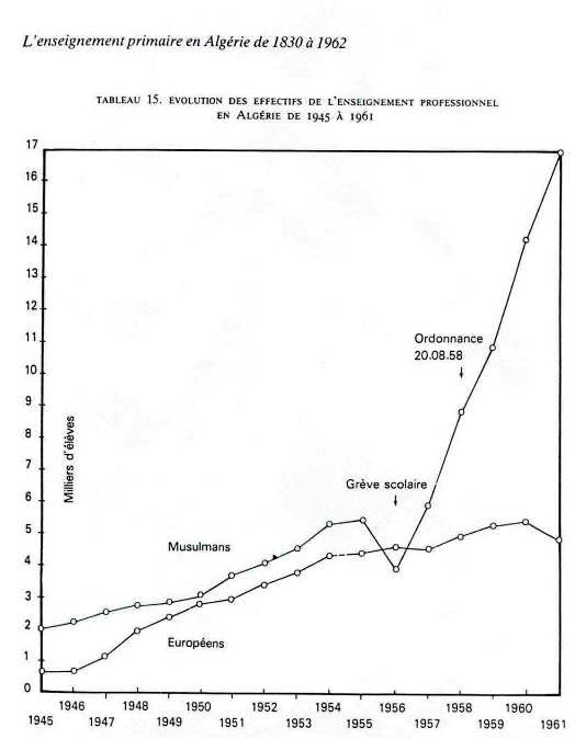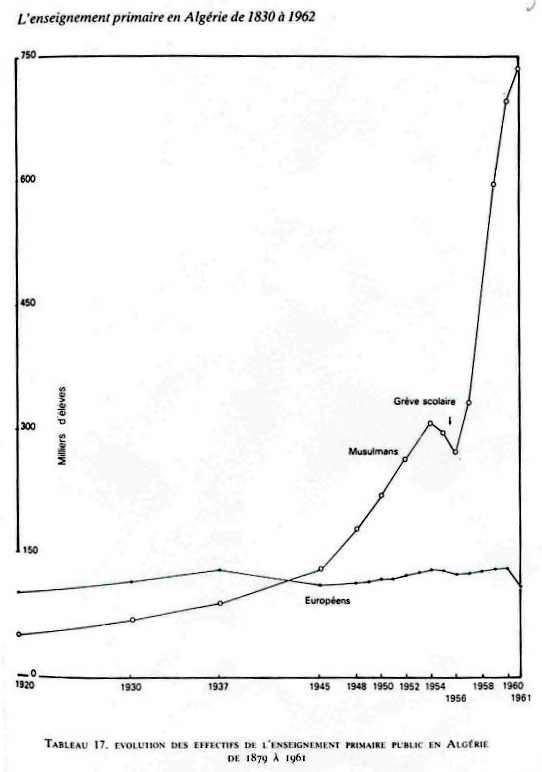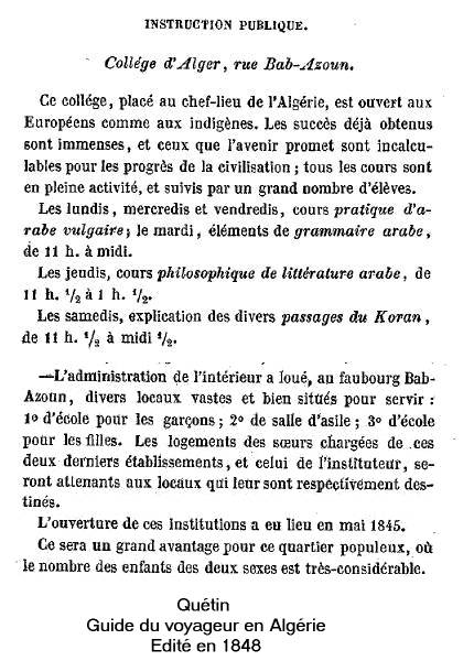 où on apprenait surtout à lire et à écrire les versets du Coran. Forte opposition à l'école française. 1833 : 1 ère