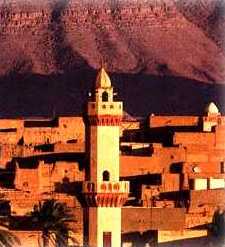Sidi Okba : Ville Sainte de l'Islam. La mosquée de la ville abrite le tombeau de l'Apôtre-guerrier Sidi Okba Ben Nafi fondateur de Kairouan