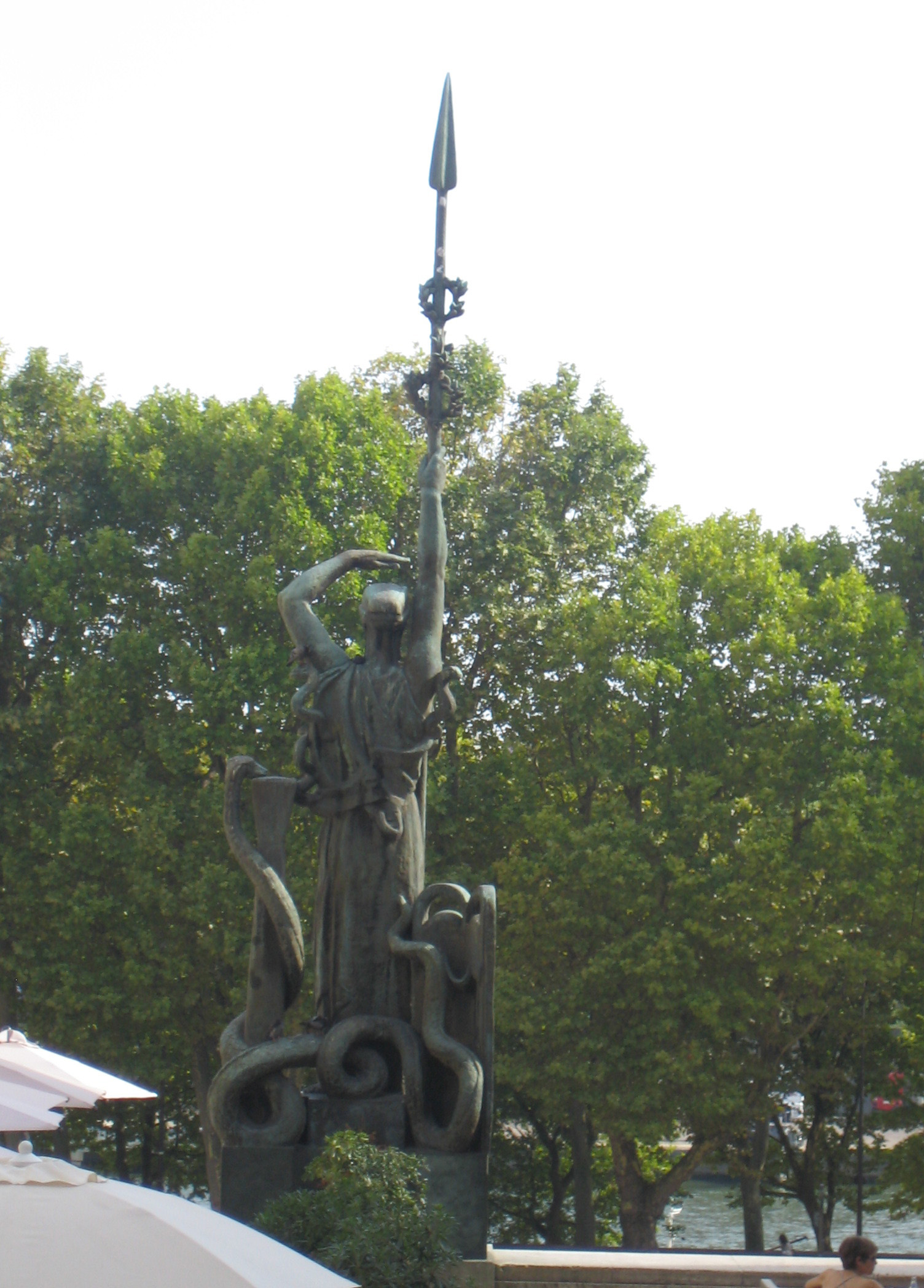 La quatrième épreuve, de mêmes dimensions que l’épreuve d’Alger fut érigée le 18 juin 1948 par le Général de Larminat, Président de l’Association des Français Libres, sur le parvis du Musée d’Art Moderne à Paris, apposant sur son socle une plaque à la mémoire des combattants de la France Libre.