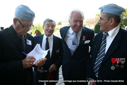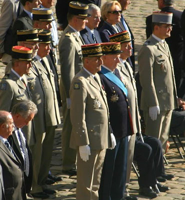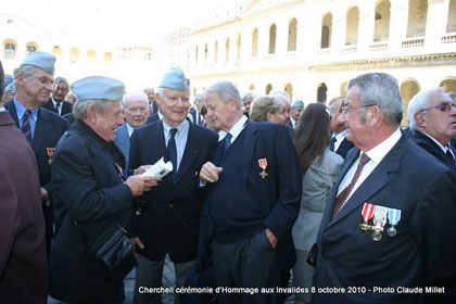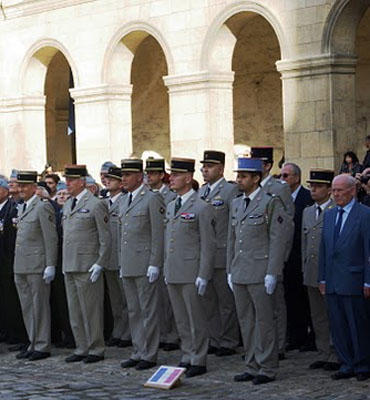 Mêlés aux calots bleus de Cherchell, on reconnaît Geneviève de Galard, infirmière convoyeuse de l'Air de Diên Biên Phu et l'ancien ministre Jean-Pierre Chevènement, ancien de Cherchell