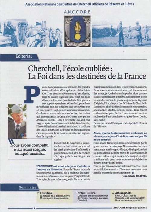 L'Ecole Militaire de Cherchell a joué un rôle singulier et emblématique dans l'histoire de notre pays. La mention qui accompagne la Légion d'Honneur décernée en 1963, en