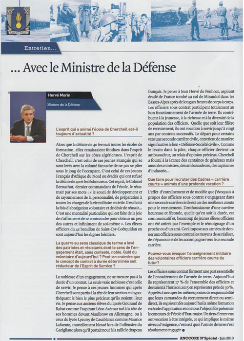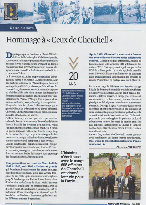 A vous qui formez des stagiaires, Cherchell rappelle la vocation de l'Ecole de l'Infanterie: se préparer à la guerre. Dans la lignée du général Salvan et de l'adjudant-chef Khalfa, continuez à transmettre avec passion votre expérience,