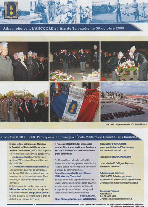 Céremonie du cinquantième anniversaire de la mort de Gérard de CathelineauSaint cyrien de la promotion Croix de Provence (cinquième série de Cherchell) , blessé en Indochine, tué en Grande Kabylie (Tamaghoucht)