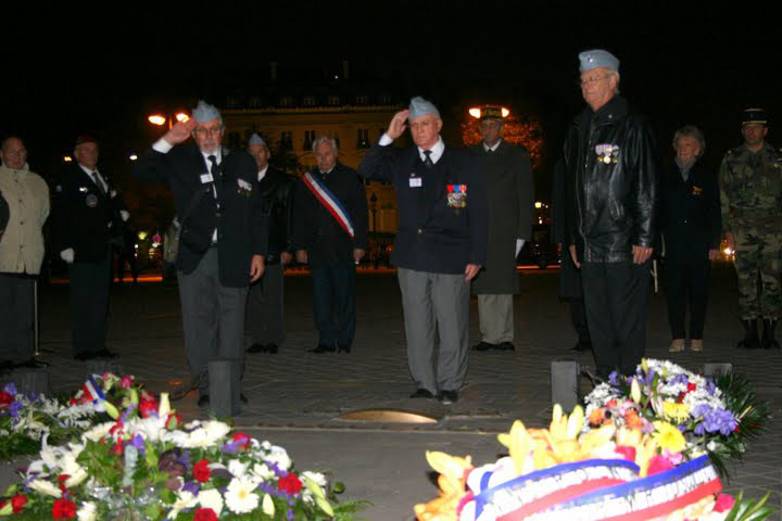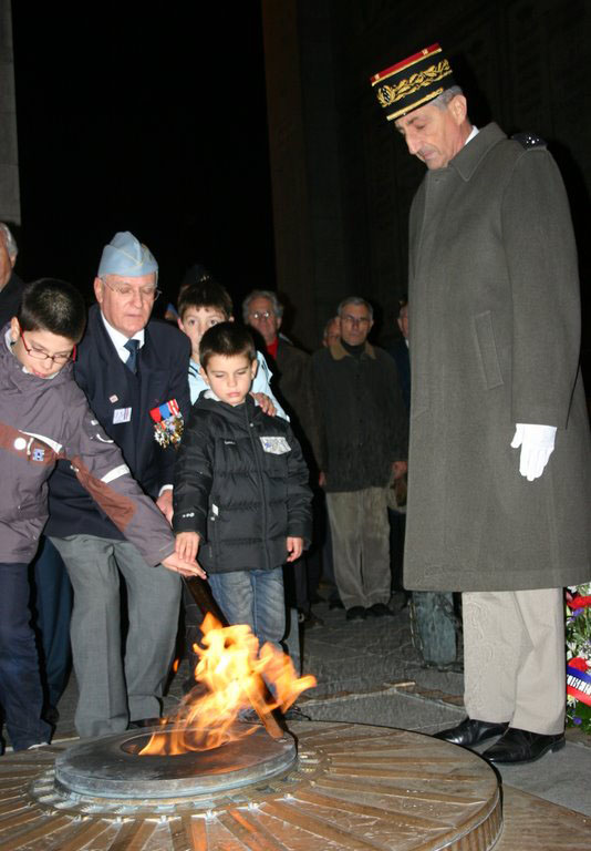 Après le ravivage de la flamme du souvenir, par le général Jacques Jauffret, Grand officier de la Légion d’honneur, le général Gérard Delbauffe, président d’honneur du Souvenir