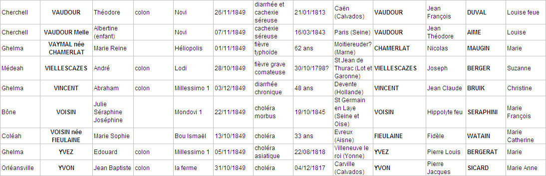 Cette liste n'est donc pas exhaustive et ne comprend pas toutes les personnes décédées fin 1849.