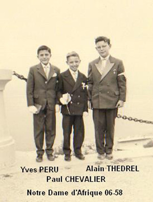 Photos et documents transmis par Alain THEDREL du "R": Rue du Printemps, avec Hélène FALGARONNE, sa soeur Arielle, Yves PERU et Paul CHEVALIER, à Notre-Dame d'Afrique, la Garde Territoriale...