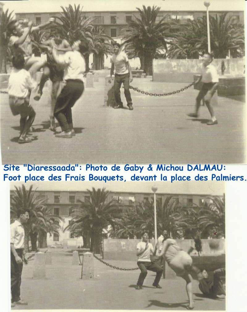15 photos de la famille DALMAU, nos voisins du "N", chez qui fut placée ma soeur cadette durant l'opération du coeur de ma mère, clinique des Orangers. M. DALMAU père puis toute la famille à Verte-Rive, Fort de l'Eau. 2 photos de foot place des Frais Bouquets, devant la place des Palmiers. 1 photo de la communion de Jean et Michou. 1 photo de Michou à l'école maternelle Troquet de Hussein-Dey. 6 photos de groupes, place des Palmiers avec en fond le "M", le "G" ou le "F": avec suivant les photos, Michou DALMAU, Jean-Claude et Andrée SEGURA, Michel ABENTIN, Jojo BELLOD, Patrick BRAUN, Georges PARPAL, Jean-Christian MORARD ou Jeanine TESSIER BRUN. 2 photos de Jacqueline et de Michou en 1962. Enfin une photo de 2008 avec Andrée, Marcelle, Jacqueline, Jean et Michou DALMAU.