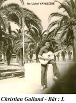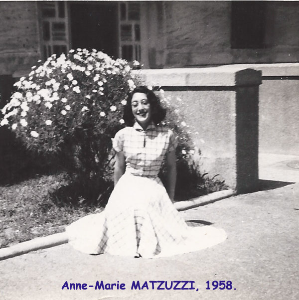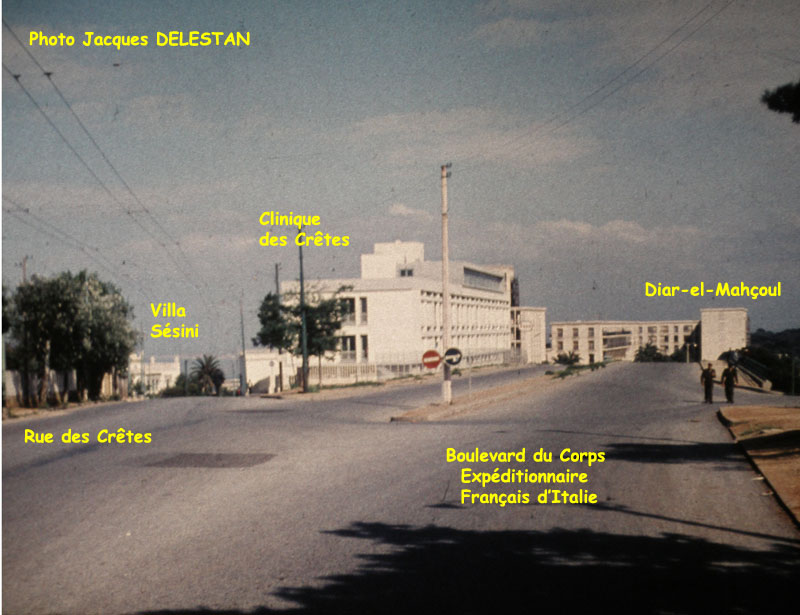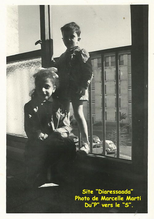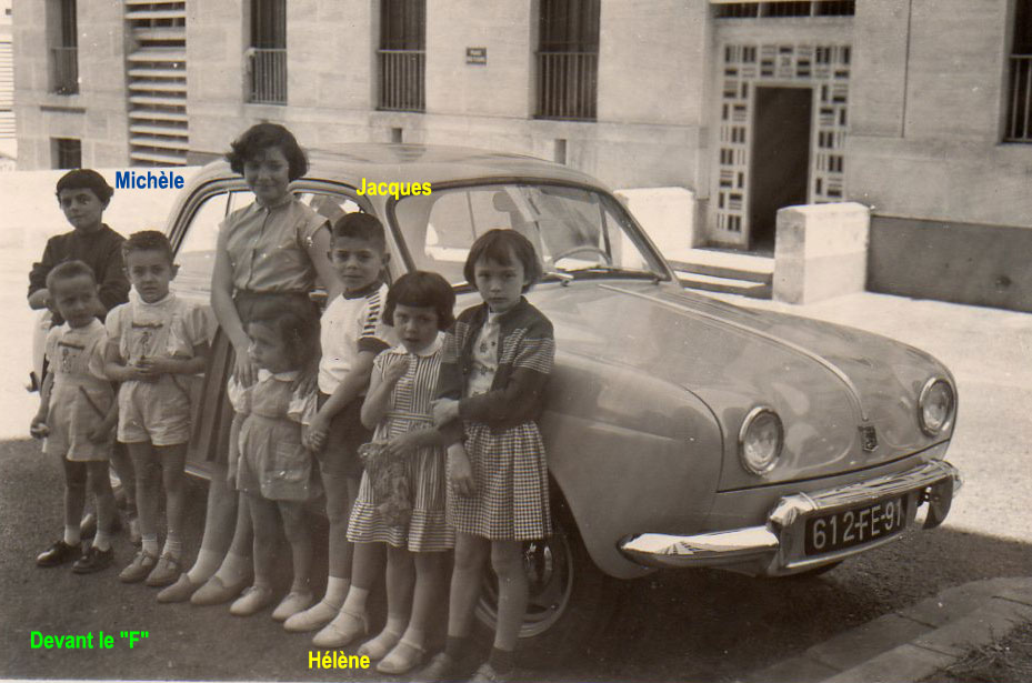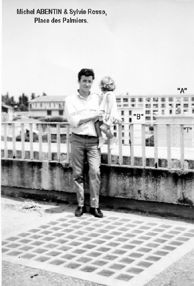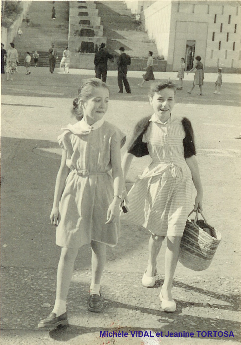 Derniers ajouts: 14.11.2008: Photos de Michèle VIDAL. 20.02.2009: Photo d'André PUCHOL au sommet de la Tour. 31.07.2009: 2 photos transmises par Jean-Luc REY. 05.11.2009: 9 photos de Jacques DELESTAN ci-dessous, bandeau bleu. 18.01.2010: 2 photos de Lucette OLIVIERO, 3ème case, jaune. 20.01.2010: Ajout de Guy ROSSO sur la photo de Jean-Luc REY, place des Palmiers. 29.01.2010: Ajout de 32 photos de Guy ROSSO, 1er bandeau rose. 01.02.2010: Ajout de 2 photos de Michèle ROIG (avec REVOL), 5ème case, jaune. 15.02.2010: 6 nouvelles photos de Michèle VIDAL, 2ème bandeau (vert). 23.04.2010: 2 photos de Marcelle MARTI, immédiatement ci-dessous. 15.08.2010: 3 photos de Odile PETITEVILLE (BABIC), de 1958. 27-28.09.2010: 2 photos Jacques DELESTAN, 1 avec les OTTAVIANI et 1 avec Danièle CURNIER et Ghislaine LENEVEU. 30.09.2010: Reprise de 5 photos de Jacques et ajout de 7 nouvelles photos. 07.10.2010: 1 photo de Daniel CORTASSA et 1 document et 4 photos de Michel VAYSSIERE. 12.10.2010: Ajout de 11 diapositives de Jacques. 08.01.2011: Ajout d'une photo de Joseph STABILE, et mises à jour par lui, des noms sur 2 photos de Serge NETZ et Jean-Claude COSTA. 22.05.2011: Ajout de 5 photos d'Yvette MATZUZZI / MESLIER. 22.08.2011: 3 photos de Maguy REINERT. 22.06.2012: 1 document et 5 photos de Marcelle MARTI. 03.01.2013: Ajout de 15 photos de la famille DALMAU, merci Gaby, épouse de Michou, avec l'autorisation des frères et soeurs de Michou. 16/12/2018: Ajout d'une photo devant le "J" de la famille MONBEIG.