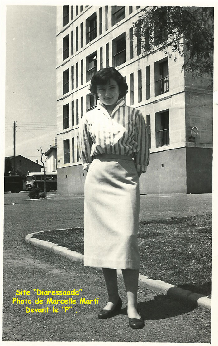 Un document (Carte d'identité scolaire de l'Ecole de Diar-es-Saâda) et 5 photos de Marcelle MARTI/HENEAUX, du "P", à la suite de notre rencontre du 10 juin dernier à Uzès, prises autour du "P" et de la place des Frais Bouquets.