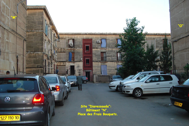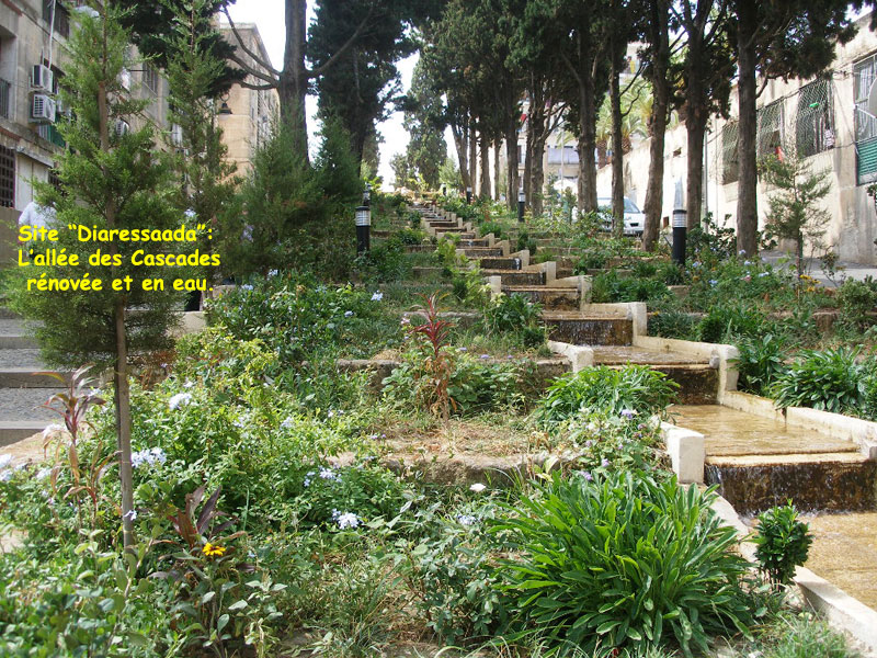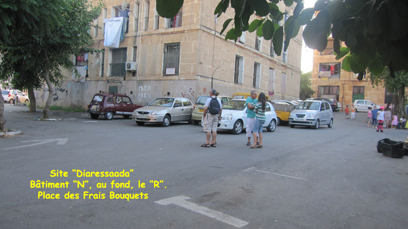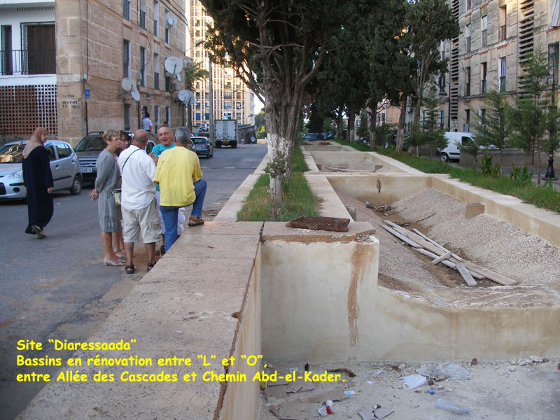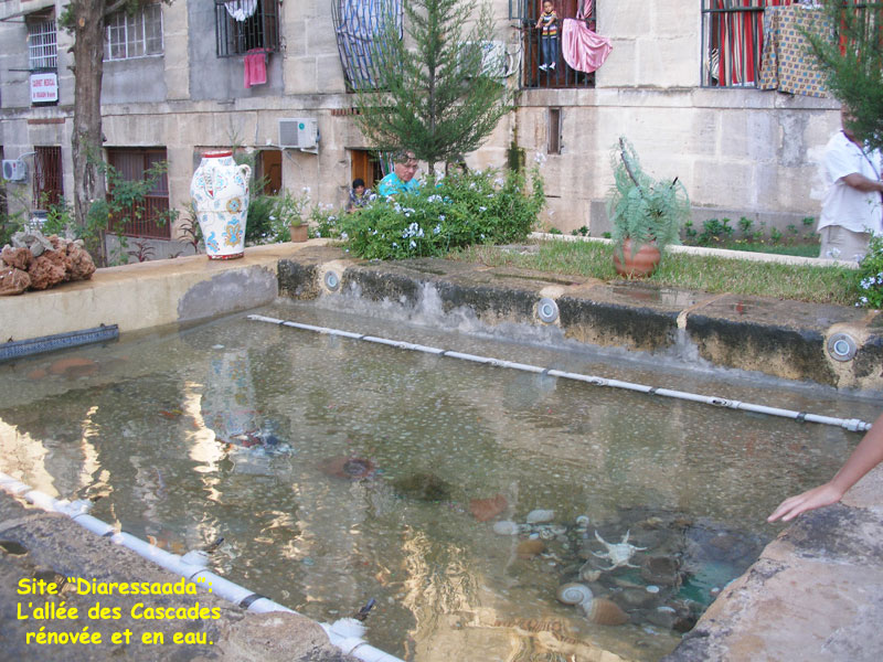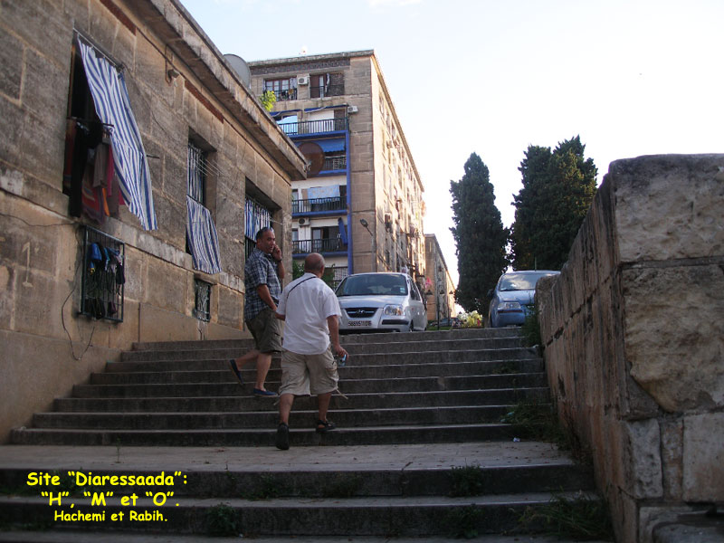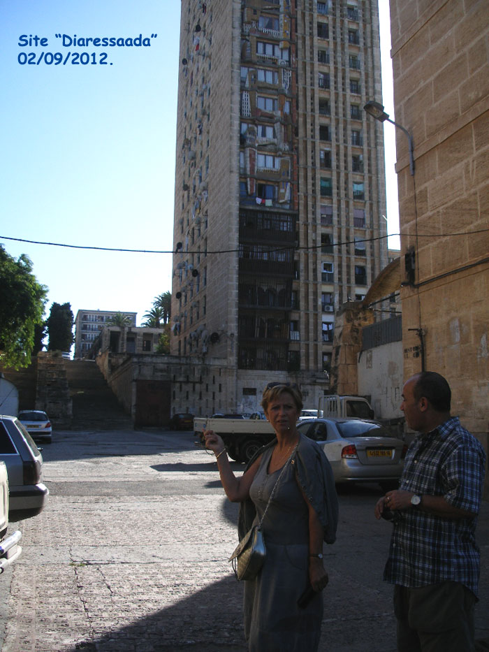 Du 30 août au 13 septembre j'étais une nouvelle fois à Alger, chez mes amis Fatima et Rabih. Terre natale et cité de Diar-es-Saâda me manquent trop, et lorsque l'on a franchi le premier pas et que l'on a des amis formidables sur place, rien ne peut plus me retenir. Et grande première, j'emmenai ma soeur aînée sur la trace de ses souvenirs, et son mari à la découverte des lieux du passé algérien de sa femme. Après avoir été reçus par les parents de Rabih, bâtiment "E", et son frère Hachemi, qui nous régalera en chansons plus tard au Sheraton, nous avons longuement déambulé, surtout autour de l'allée des Cascades, du "N" de notre enfance, et de la place des Palmiers. Les photos, prises par ma soeur, Rabih ou moi-même, sont presque identiques à celles des autres années, avec cependant un grand changement: l'allée des Cascades rénovée et remise en eau. A la prochaine visite, le bassin de la place des Palmiers devrait être restauré, ainsi que les bassins entre l'allée des Cascades et le chemin Abd-el-Kader. J'ai profité de ce voyage pour retrouver l'ancienne droguerie de la Cité, Paget, ainsi que l'épicerie Cortassa. Enfin ma soeur et moi tenons à remercier chaleureusement Yala Mekki et les autres habitants pour leur formidable soutien lors du seul incident de la quinzaine. Hier comme aujourd'hui, Saâda est une grande famille qui se trouve et se retrouve.