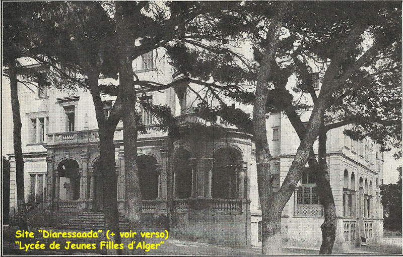 - "Lycée de Jeunes Filles d'Alger", verso, carte des années trente. Ajout du 08.08.2010.
