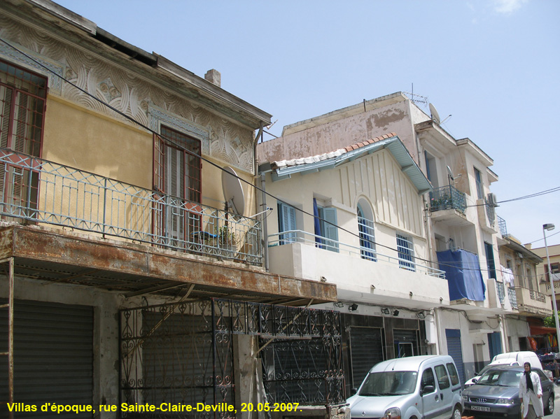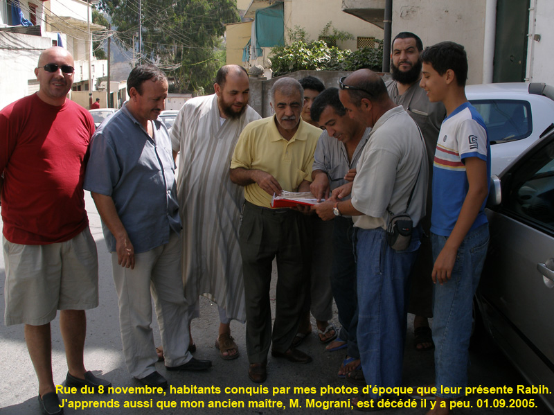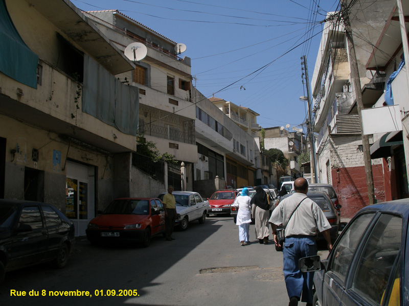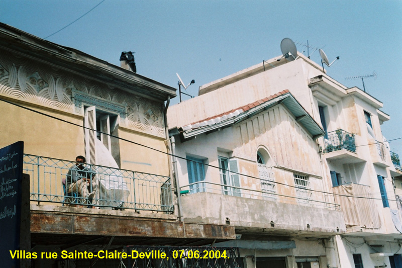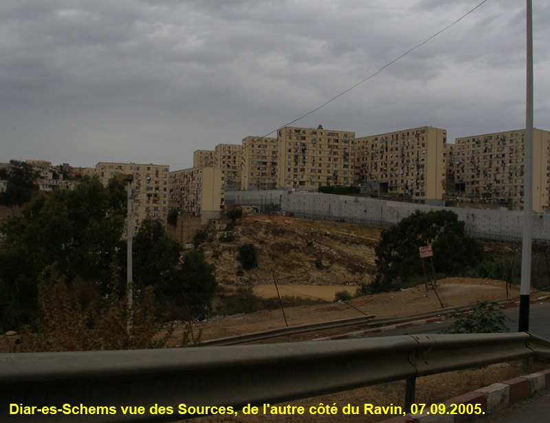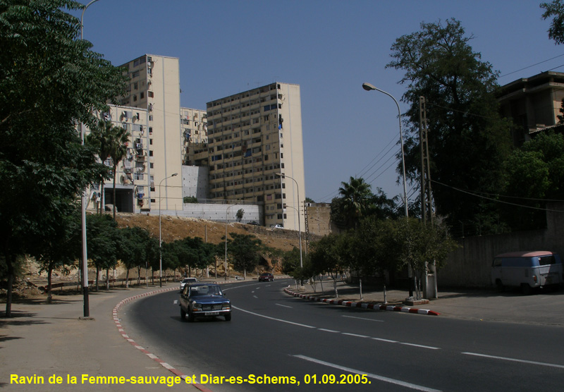 J'ai regroupé l'ensemble des photos prises en 2004, 2005 et 2007, en progressant de Saâda vers la Redoute (Mimosas, chemin Abd-el-Kader, rue Sainte-Claire Deville (le marché Gaspard d'où nous ramenions des feuilles de mûrier pour nos vers à soie élevés dans des boîtes à chaussure), place de la Redoute, rues du 8 novembre, André Chénier, René Viviani), Diar-ech-Chems (que j'ai vu construire depuis notre loggia, en 1961), le Ravin de la Femme Sauvage, le Golf (avec un peu de temps passé dans un poste de police pour la photo du ministère...) et le lycée Fromentin.