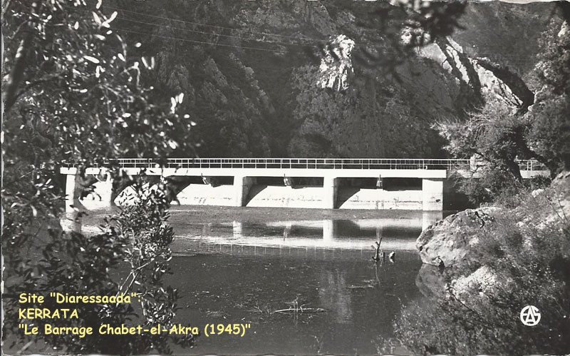 barrage voûté du Chabet-El-Akra, retenue d'eau de 900.000 m3, par la rive droite de l'oued Agrioun. Nous reviendrons à Kerrata après la visite au barrage de l'Iril-Emda.