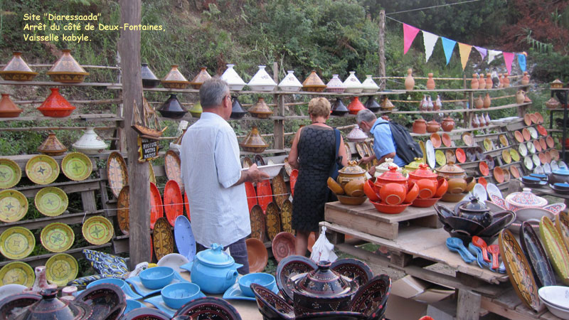 L'accès à la cascade se fait par une route encombrée de boutiques pour touristes. La cascade se révèle brusquement au terme de la route. L'eau tombe d'une hauteur de 40 mètres dans un petit cirque ombragé et frais. Sur le chemin du retour à Tichy, nous nous arrêtâmes une dernière fois du côté de Deux-Fontaines, acheter un peu de vaisselle kabyle auprès de l'une des nombreuses boutiques installées le long de la route.