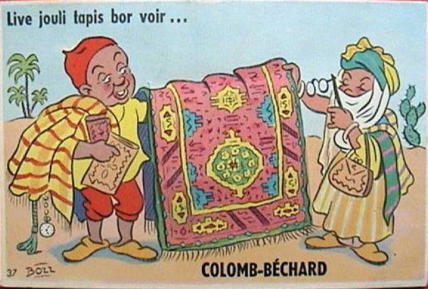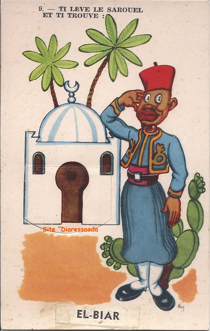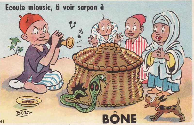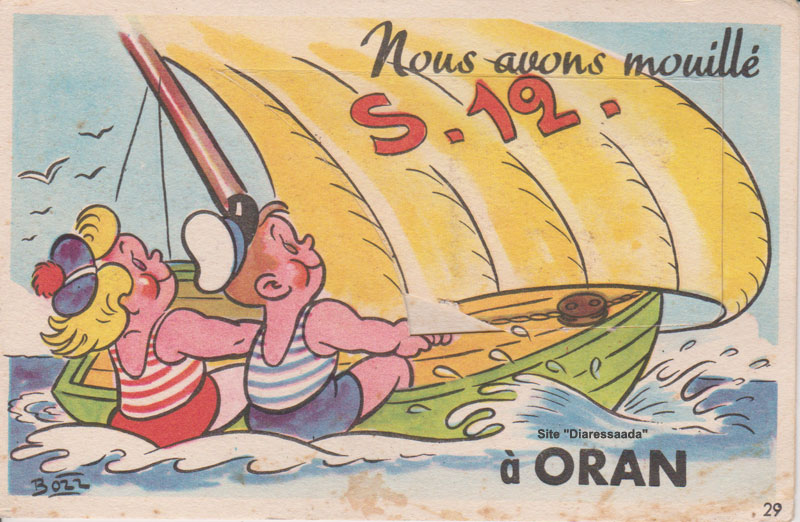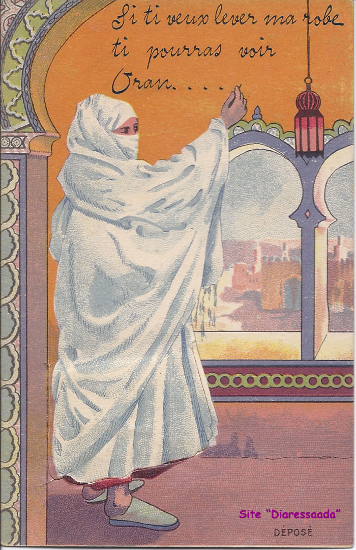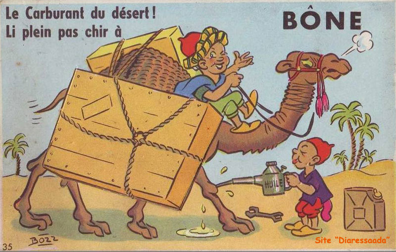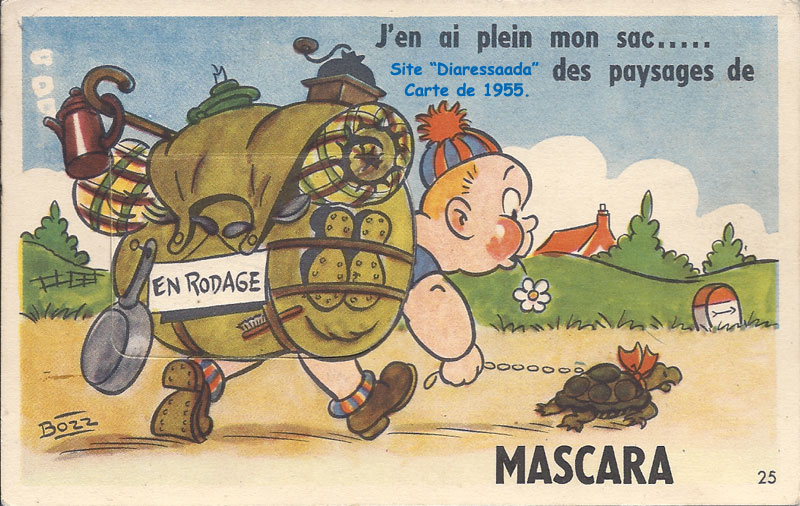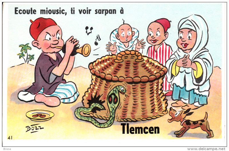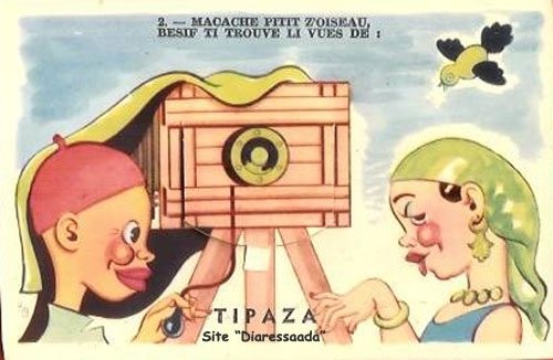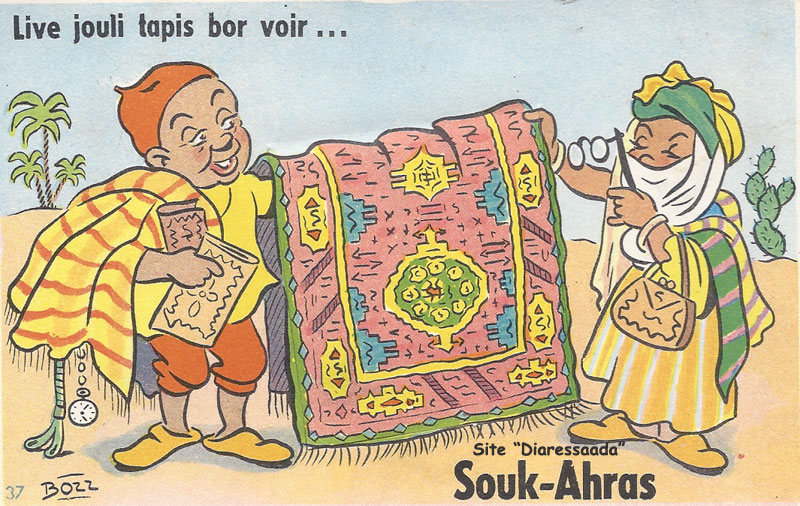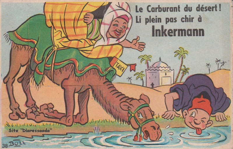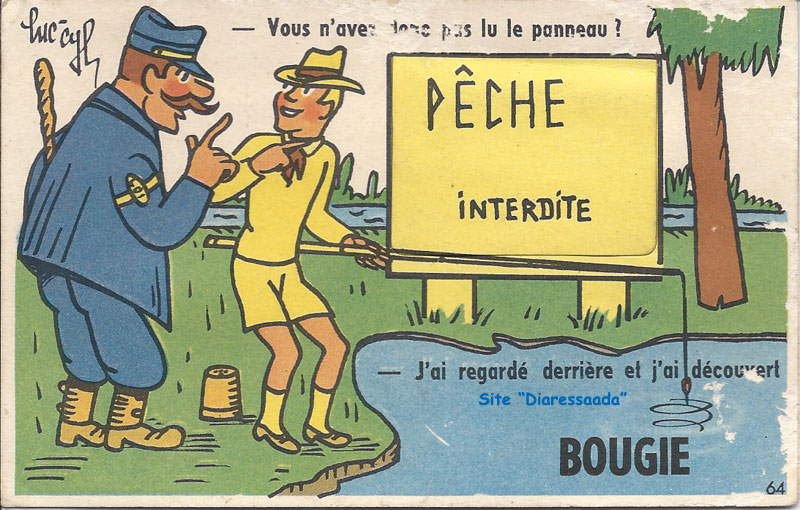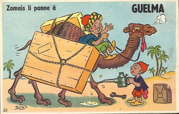 Ajouts: 05.12.2009: 15 cartes: Alger (2), Algérie, Dellys, Djidjelli, Constantine (2), Tlemcen, Sétif, Collo, Colomb-Béchar, Miliana, Philippeville (2), et Sidi-Bel-Abbès. 04.03.2010: 8 cartes: Alger, Aïn-tédélès, Bône, Boufarik, Cherchell, Dellys, Relizane et Saïda. 06.05.10: 2 cartes Alger-Algérie et Oran. 07.06.2010: Ajout de 4 cartes: Alger, Oran, Philippeville et Tébessa. 07.07.2010: Ajout de 5 cartes: Alger, Batna, Oran et Saint-Cloud. 27.07/2010: Ajout de 6 cartes: Chréa, Colomb-Béchar, Médéa, Ménerville, Oran et Sidi-bel-Abbès . 23.10.2010: Ajout de 33 cartes (une dizaine m'a échappé sur Internet!): Alger, Algérie, Biskra, Blida, Bône, Bougie,Collo, Constantine, El-Biar, Guelma, Ménerville, Médéa, Mostaganem , Oran, Philippeville, Sétif et Tizi-Ouzou. 15/12/2010: Bône, Castiglione, Constantine. 11/04/2011: Alger, Algérie, Bône, Bougie, Bouïra, Constantine, Médéa, Philippeville et Tipaza. 28/07/2011: Alger, Azazga, Boufarik, Blida, Cherchell, Colomb-Béchar, Djidjelli, El-Biar, Inkermann, Marnia, Oran, Saint-Cloud. 31.10.2011: 25 nouvelles cartes: Alger (3), Blida (1 refaite), Bône, Collo, Djidjelli , Menerville, Oran(4 dont 1 refaite), Mascara, Perregaux, Sétif, Sidi-bel-Abbès, Tébessa, Tiaret, Tizi-Ouzou. 06.12.2011: 7 nouvelles cartes: Alger, Bougie, Djidjelli, Mascara, Souk-Ahras, Tlemcen. 09.02.2012: 4 nouvelles cartes: Algérie, Djidjelli, Mascara et Sétif. 27.04.2012: Algérie (1), Alger (10), Bône (1), Bougie (2), Bou-Saâda (1), Castiglione (1), Constantine (5), Djidjelli (1), El-Biar (1), Marnia (1), Mascara (1), Ménerville (1), Mostaganem (2), Oran (4), Philippeville (2), Port aux Poules (1). 06.07.2012: Ajout de 27 nouvelles cartes: Algérie (2), Alger (3), Batna (1), Bône (6), Boufarik (1), Constantine (5), El-Biar (3), Guelma (2), Maison-Carrée (1), Mascara (1), Oran (1), Sidi-bel-Abbès (1). 19.08.2012: Ajout de 6 cartes: Algérie (1), Aïn-Sefra (1), Bougie (2), Constantine (1) et Oran (1). 24.02.2013: Ajout de 14 cartes: Azazga (n°27), Biskra (n°37), Collo (n°75), Constantine (n°25), Dellys (n°36), Djidjelli (Mairie), Guelma (n°60), Mostaganem (n°53), Oran (2) (n°21 & n°27), Philippeville (n°1), Relizane (n°44) et Saïda (2) (n°75 & 85). 30.06.2013: Ajout de 11 carte, par ordre alphabétique: Alger (3 dont 2 refaites, n°103 + n°010 & 068), Bou-Saâda (2: n°35 & 38), Constantine (1: n°003), El-Biar (1: n°06), Oran (1: n°008), Philippeville (2: n°093 & n°"1951" refaite), Sétif (n°20), Sidi-bel-Abbès (1 n°39 refaite). 17.09.2013: Ajout de 6 cartes: Algérie (n°100), Azazga (n°11), Inkermann (n°38), Marnia (n°45), Philippeville (n°37), Saïda (n°38). 31.01.2014: Alger (n°15, n°29, "valise","trempette"), Algérie (n°8), Arzew (n°82), Blida (Homme à la valise), Bône ("Dromadaires" et n°27), Bougie (n°4), Castiglione (n°06), Colomb-Béchard (n°38), Constantine ("Vue" et "Dromadaires", refaites, et n°6, n°27 et n°75), Marnia (n°23), Médéa (n°36), Ménerville (n°21), Mostaganem ("Bateau", n°37 et °53), Oran ("Vue", n°14, n°15, "Tente"), Sétif ("Facteur"), Souk-Ahras (n°26), Taher (n°39), Tizi-Ouzou (n°17), Tlemcen (n°35). 23.05.2014: Refonte, ajout d'un tableau de présentation des différents modèles de cartes par éditeur, et ajout de 15 cartes, ci-dessous et dans le tableau général: Algérie (n°31 "Scènes et types"), Alger ("pêche sous-marine"), Batna (n°40), Bône (n°49), Bougie (n°23), Bou-Saâda (n°37), Collo (n°23), Constantine (n°51 et "voyageuse"), Dellys (n°28 et 79), Frenda (n°1), Miliana (n°37), Mostaganem (n°53), Sidi-bel-Abbès (n°41). 28.06.2014: Ajout de 6 cartes, la n°8 CAP dans la présentation des différents modèles, et dans le tableau général par ville: Algérie (n°25), Alger (n°8), Bône (n°38 et n°65), Oran (n°8) et Sétif (n°4). 30/08/2014: Ajout de 2 cartes, la n°91 des éditions Gaby dans la présentation des différents modèles, et par ville, Blida (n°91) et Marnia (n°37). 22/10/2014: Ajout de 13 cartes, la n°72 CAP dans la présentation des différents modèles, ci-dessous, et à Oran, la n°108 Gaby, dans la présentations des différents modèles, ci-dessous, et à Alger, les n° 1, 3 et 9 signées NERI et éditées par CAP, dans la présentation des différents modèles, ci-dessous et à Alger, le "Facteur", dans la présentation des différents modèles sans éditeur, ci-dessous et à Alger, et Alger (n°21 et 49 CAP, Leconte, n°13 Jomone), Arzew (n°17 Jomone), Boufarik (n°13 Jomone), Djidjelli (n°10 Jomone). 23/02/2015: Ajout de 2 cartes ci-dessous dans les différents modèles (1 Delboy, Mostaganem: le garde-champêtre, et 1 Levy & Neurdein, Philippeville, "sur la plage"), et de 17 cartes par ville (immédiatement ci-dessous et par villes): 2 Algérie et "Scènes et types", 1 Alger (n°12 Jomone "Mauresque"), 2 Bouïra et les gorges de Palestro (n° 41 et 43 EPA), 2 Constantine (n°18 Gaby "tacot" et le "facteur"), 1 Gouraya (n°37 EPA), 1 Médéa (vue), 4 Ménerville (n° 22, 36, 37 et 38 CAP), 1 Mostaganem (Garde-champêtre), 1 Philippeville (Levy: "pluie sur la plage"), 1 Taher (n°38 CAP), et 1 Zéralda (n°16 EPA). 03/08/2015: Ajout de 5 cartes ci-dessous dans les différents modèles (1 CAP n°68, 2 Gaby: n°9 "Girouette Coq" et "Marchand de tapis", 1 Neri n°6 "Petit porteur" et 1 n°27 sans auteur "Policier") et de 9 cartes par ville (immédiatement ci-dessous et dans les villes): 2 Algérie (Gaby n°9 "Coq" et n°27 "Policier"), 2 Alger (Néri n°6 "Petit porteur et Gaby "Tapis"), 2 Bône (n°21 et n°68 CAP), 1 Chréa (Narguilé), 1 Saïda (Car), et 1 Sidi-bel-Abbès (Chameau buvant). 03/09/2015: Ajout d'une carte (Néri / Artaud n°5) et à Bou-Saâda. 10/11/2013: Ajout de 7 cartes ci-dessous (CAP n°3 (tente) & n°32 (jumelles)) + MD2 (femme à la TV) + ? (femme à l'appareil photo) + neri (belle Aïcha) + Delboy (écolière) + Gaby n°2 (Hélicoptère)) dans les différents modèles et de 31 car