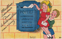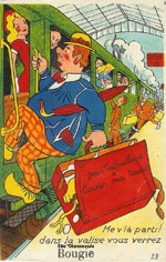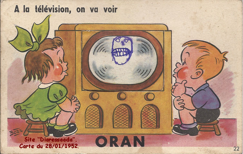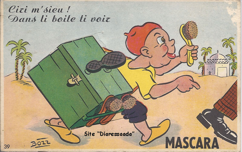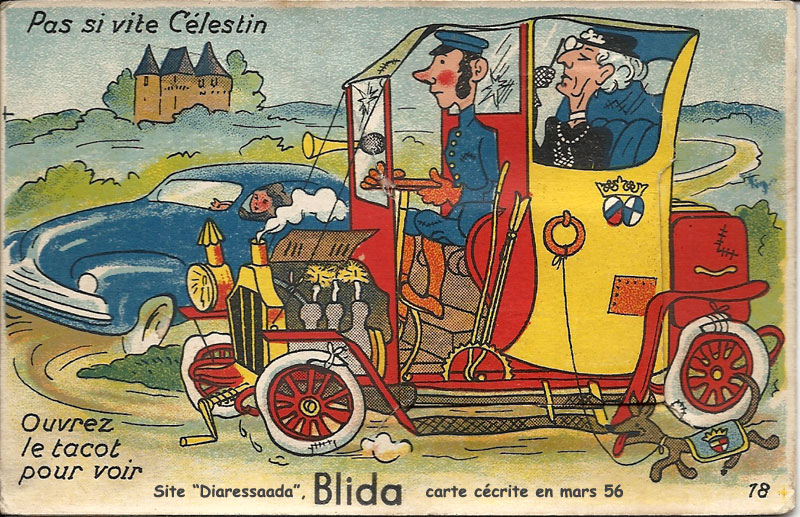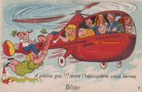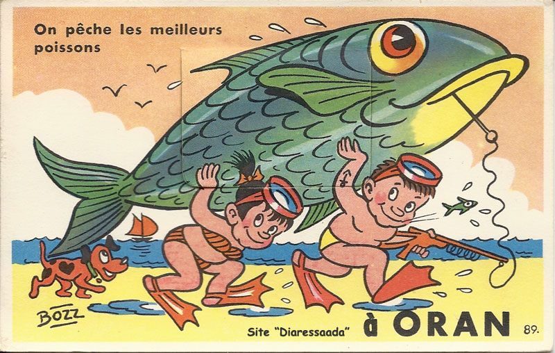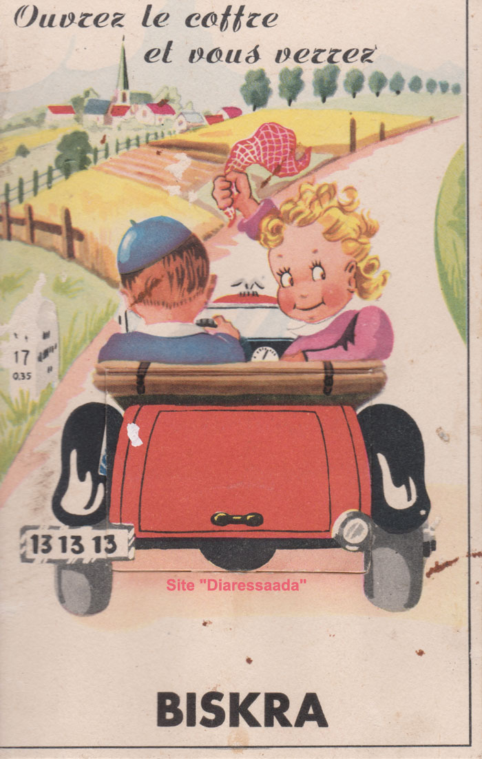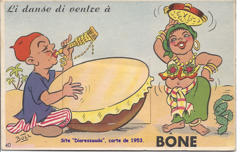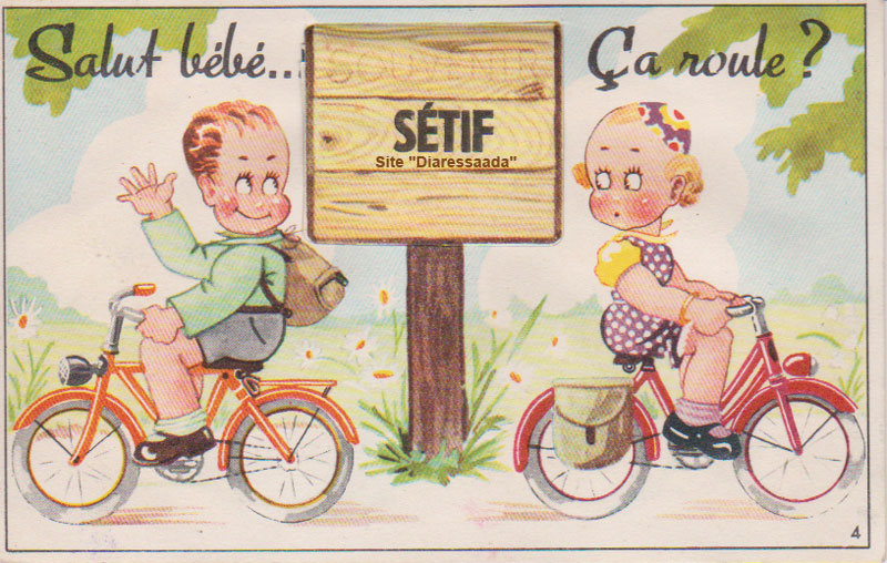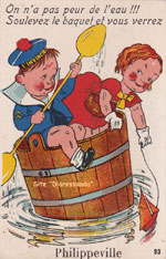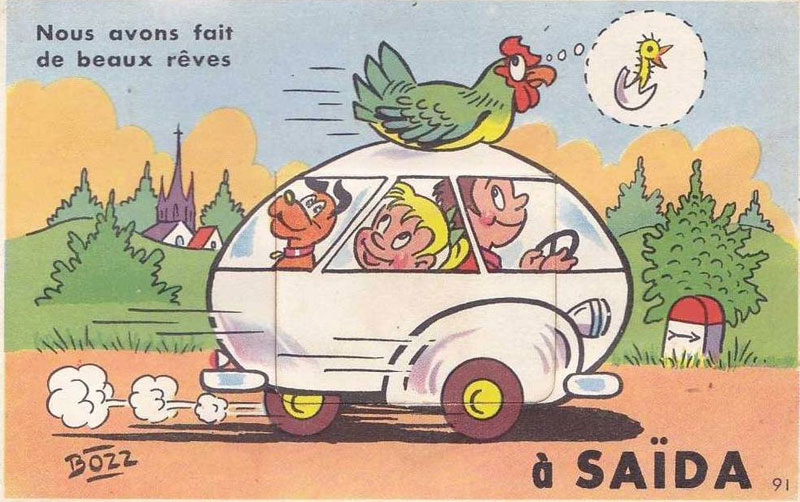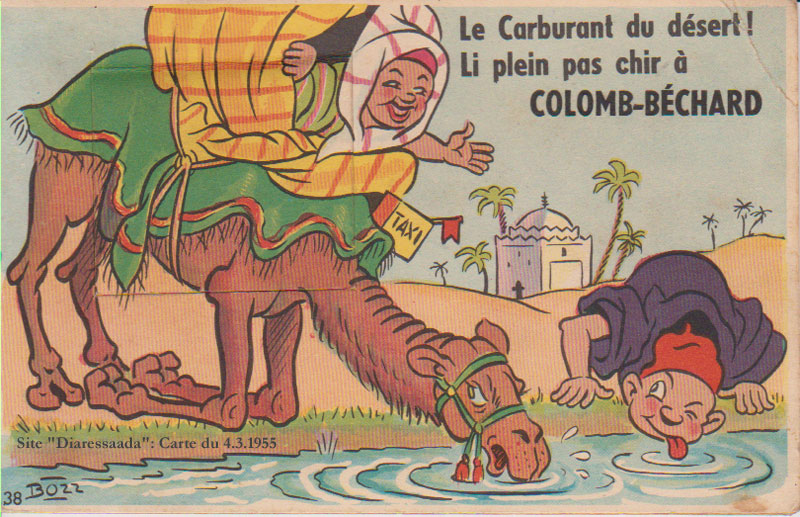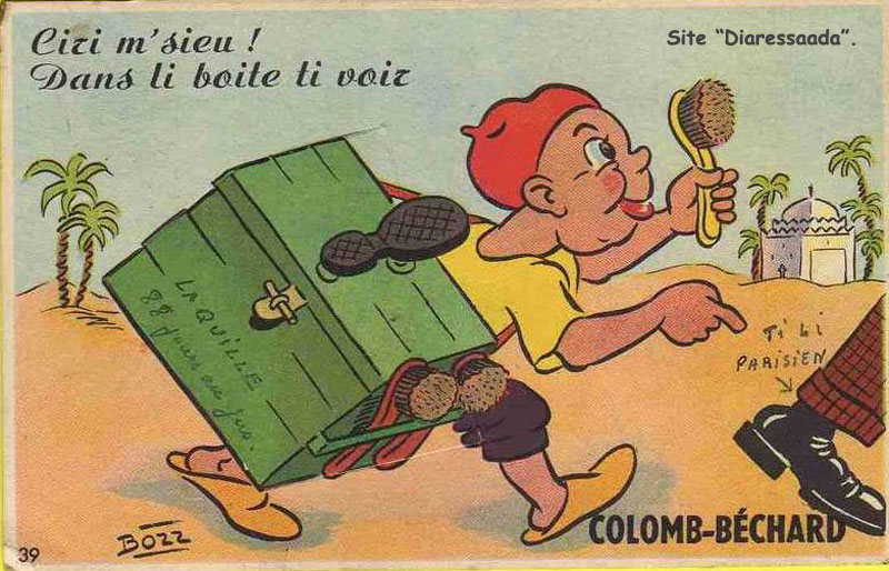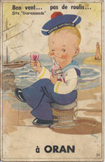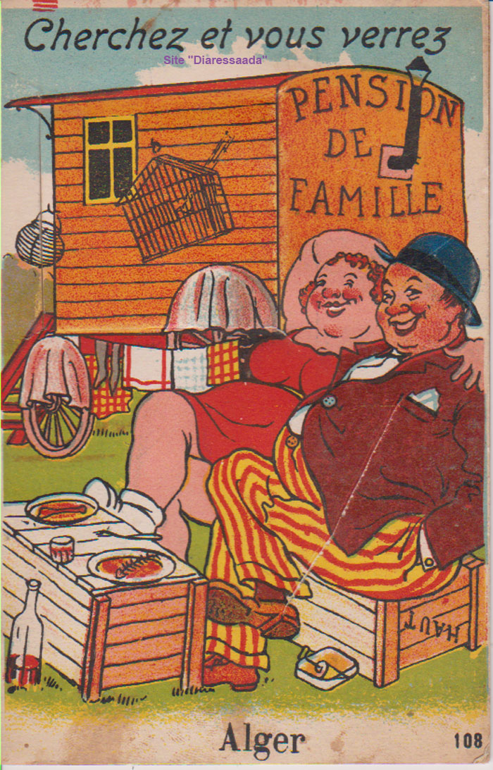 Ajouts: 05.12.2009: 15 cartes: Alger (2), Algérie, Dellys, Djidjelli, Constantine (2), Tlemcen, Sétif, Collo, Colomb-Béchar, Miliana, Philippeville (2), et Sidi-Bel-Abbès. 04.03.2010: 8 cartes: Alger, Aïn-tédélès, Bône, Boufarik, Cherchell, Dellys, Relizane et Saïda. 06.05.10: 2 cartes Alger-Algérie et Oran. 07.06.2010: Ajout de 4 cartes: Alger, Oran, Philippeville et Tébessa. 07.07.2010: Ajout de 5 cartes: Alger, Batna, Oran et Saint-Cloud. 27.07/2010: Ajout de 6 cartes: Chréa, Colomb-Béchar, Médéa, Ménerville, Oran et Sidi-bel-Abbès . 23.10.2010: Ajout de 33 cartes (une dizaine m'a échappé sur Internet!): Alger, Algérie, Biskra, Blida, Bône, Bougie,Collo, Constantine, El-Biar, Guelma, Ménerville, Médéa, Mostaganem , Oran, Philippeville, Sétif et Tizi-Ouzou. 15/12/2010: Bône, Castiglione, Constantine. 11/04/2011: Alger, Algérie, Bône, Bougie, Bouïra, Constantine, Médéa, Philippeville et Tipaza. 28/07/2011: Alger, Azazga, Boufarik, Blida, Cherchell, Colomb-Béchar, Djidjelli, El-Biar, Inkermann, Marnia, Oran, Saint-Cloud. 31.10.2011: 25 nouvelles cartes: Alger (3), Blida (1 refaite), Bône, Collo, Djidjelli , Menerville, Oran(4 dont 1 refaite), Mascara, Perregaux, Sétif, Sidi-bel-Abbès, Tébessa, Tiaret, Tizi-Ouzou. 06.12.2011: 7 nouvelles cartes: Alger, Bougie, Djidjelli, Mascara, Souk-Ahras, Tlemcen. 09.02.2012: 4 nouvelles cartes: Algérie, Djidjelli, Mascara et Sétif. 27.04.2012: Algérie (1), Alger (10), Bône (1), Bougie (2), Bou-Saâda (1), Castiglione (1), Constantine (5), Djidjelli (1), El-Biar (1), Marnia (1), Mascara (1), Ménerville (1), Mostaganem (2), Oran (4), Philippeville (2), Port aux Poules (1). 06.07.2012: Ajout de 27 nouvelles cartes: Algérie (2), Alger (3), Batna (1), Bône (6), Boufarik (1), Constantine (5), El-Biar (3), Guelma (2), Maison-Carrée (1), Mascara (1), Oran (1), Sidi-bel-Abbès (1). 19.08.2012: Ajout de 6 cartes: Algérie (1), Aïn-Sefra (1), Bougie (2), Constantine (1) et Oran (1). 24.02.2013: Ajout de 14 cartes: Azazga (n°27), Biskra (n°37), Collo (n°75), Constantine (n°25), Dellys (n°36), Djidjelli (Mairie), Guelma (n°60), Mostaganem (n°53), Oran (2) (n°21 & n°27), Philippeville (n°1), Relizane (n°44) et Saïda (2) (n°75 & 85). 30.06.2013: Ajout de 11 carte, par ordre alphabétique: Alger (3 dont 2 refaites, n°103 + n°010 & 068), Bou-Saâda (2: n°35 & 38), Constantine (1: n°003), El-Biar (1: n°06), Oran (1: n°008), Philippeville (2: n°093 & n°"1951" refaite), Sétif (n°20), Sidi-bel-Abbès (1 n°39 refaite). 17.09.2013: Ajout de 6 cartes: Algérie (n°100), Azazga (n°11), Inkermann (n°38), Marnia (n°45), Philippeville (n°37), Saïda (n°38). 31.01.2014: Alger (n°15, n°29, "valise","trempette"), Algérie (n°8), Arzew (n°82), Blida (Homme à la valise), Bône ("Dromadaires" et n°27), Bougie (n°4), Castiglione (n°06), Colomb-Béchard (n°38), Constantine ("Vue" et "Dromadaires", refaites, et n°6, n°27 et n°75), Marnia (n°23), Médéa (n°36), Ménerville (n°21), Mostaganem ("Bateau", n°37 et °53), Oran ("Vue", n°14, n°15, "Tente"), Sétif ("Facteur"), Souk-Ahras (n°26), Taher (n°39), Tizi-Ouzou (n°17), Tlemcen (n°35). 23.05.2014: Refonte, ajout d'un tableau de présentation des différents modèles de cartes par éditeur, et ajout de 15 cartes, ci-dessous et dans le tableau général: Algérie (n°31 "Scènes et types"), Alger ("pêche sous-marine"), Batna (n°40), Bône (n°49), Bougie (n°23), Bou-Saâda (n°37), Collo (n°23), Constantine (n°51 et "voyageuse"), Dellys (n°28 et 79), Frenda (n°1), Miliana (n°37), Mostaganem (n°53), Sidi-bel-Abbès (n°41). 28.06.2014: Ajout de 6 cartes, la n°8 CAP dans la présentation des différents modèles, et dans le tableau général par ville: Algérie (n°25), Alger (n°8), Bône (n°38 et n°65), Oran (n°8) et Sétif (n°4). 30/08/2014: Ajout de 2 cartes, la n°91 des éditions Gaby dans la présentation des différents modèles, et par ville, Blida (n°91) et Marnia (n°37). 22/10/2014: Ajout de 13 cartes, la n°72 CAP dans la présentation des différents modèles, ci-dessous, et à Oran, la n°108 Gaby, dans la présentations des différents modèles, ci-dessous, et à Alger, les n° 1, 3 et 9 signées NERI et éditées par CAP, dans la présentation des différents modèles, ci-dessous et à Alger, le "Facteur", dans la présentation des différents modèles sans éditeur, ci-dessous et à Alger, et Alger (n°21 et 49 CAP, Leconte, n°13 Jomone), Arzew (n°17 Jomone), Boufarik (n°13 Jomone), Djidjelli (n°10 Jomone). 23/02/2015: Ajout de 2 cartes ci-dessous dans les différents modèles (1 Delboy, Mostaganem: le garde-champêtre, et 1 Levy & Neurdein, Philippeville, "sur la plage"), et de 17 cartes par ville (immédiatement ci-dessous et par villes): 2 Algérie et "Scènes et types", 1 Alger (n°12 Jomone "Mauresque"), 2 Bouïra et les gorges de Palestro (n° 41 et 43 EPA), 2 Constantine (n°18 Gaby "tacot" et le "facteur"), 1 Gouraya (n°37 EPA), 1 Médéa (vue), 4 Ménerville (n° 22, 36, 37 et 38 CAP), 1 Mostaganem (Garde-champêtre), 1 Philippeville (Levy: "pluie sur la plage"), 1 Taher (n°38 CAP), et 1 Zéralda (n°16 EPA). 03/08/2015: Ajout de 5 cartes ci-dessous dans les différents modèles (1 CAP n°68, 2 Gaby: n°9 "Girouette Coq" et "Marchand de tapis", 1 Neri n°6 "Petit porteur" et 1 n°27 sans auteur "Policier") et de 9 cartes par ville (immédiatement ci-dessous et dans les villes): 2 Algérie (Gaby n°9 "Coq" et n°27 "Policier"), 2 Alger (Néri n°6 "Petit porteur et Gaby "Tapis"), 2 Bône (n°21 et n°68 CAP), 1 Chréa (Narguilé), 1 Saïda (Car), et 1 Sidi-bel-Abbès (Chameau buvant). 03/09/2015: Ajout d'une carte (Néri / Artaud n°5) et à Bou-Saâda. 10/11/2013: Ajout de 7 cartes ci-dessous (CAP n°3 (tente) & n°32 (jumelles)) + MD2 (femme à la TV) + ? (femme à l'appareil photo) + neri (belle Aïcha) + Delboy (écolière) + Gaby n°2 (Hélicoptère)) dans les différents modèles et de 31 car