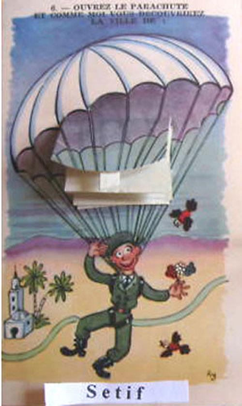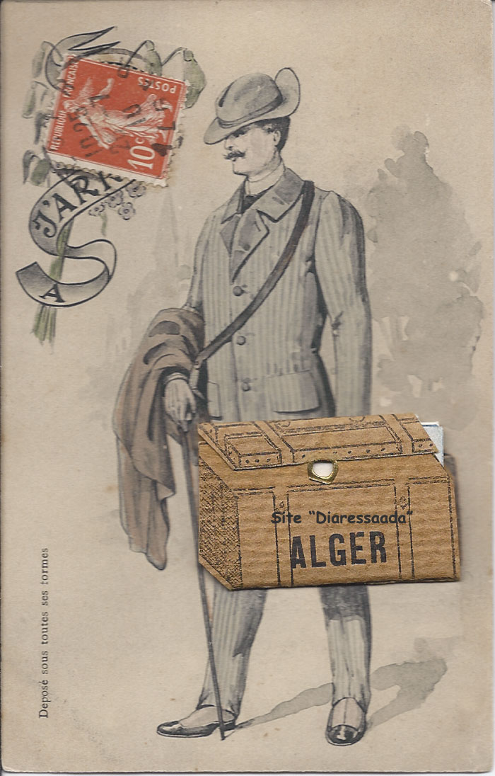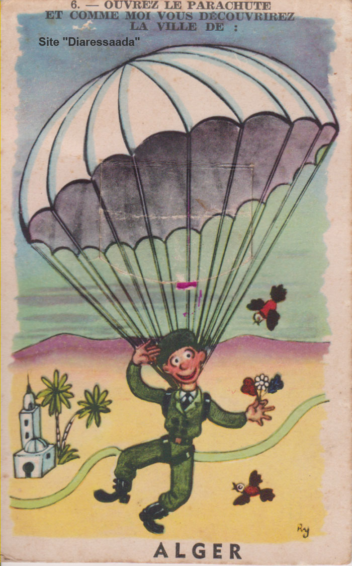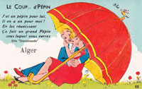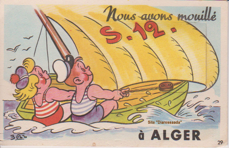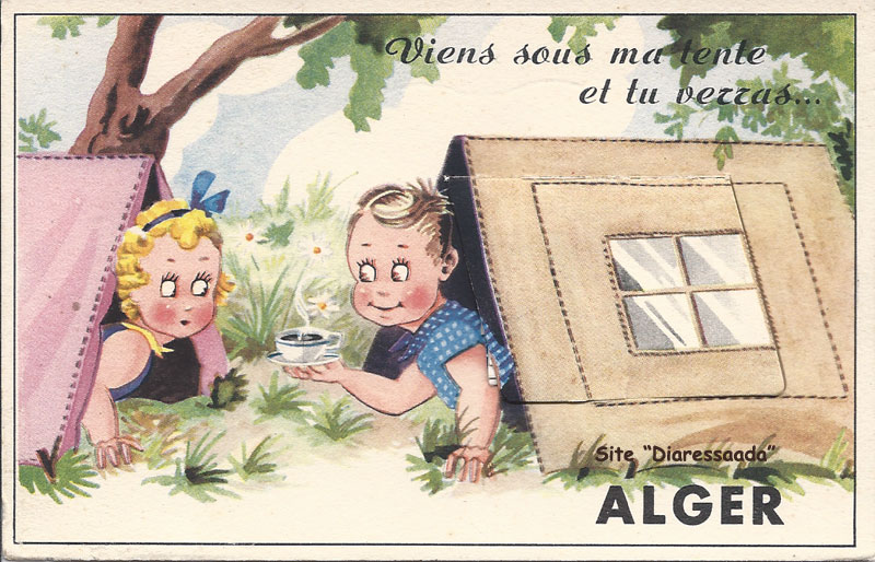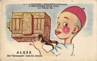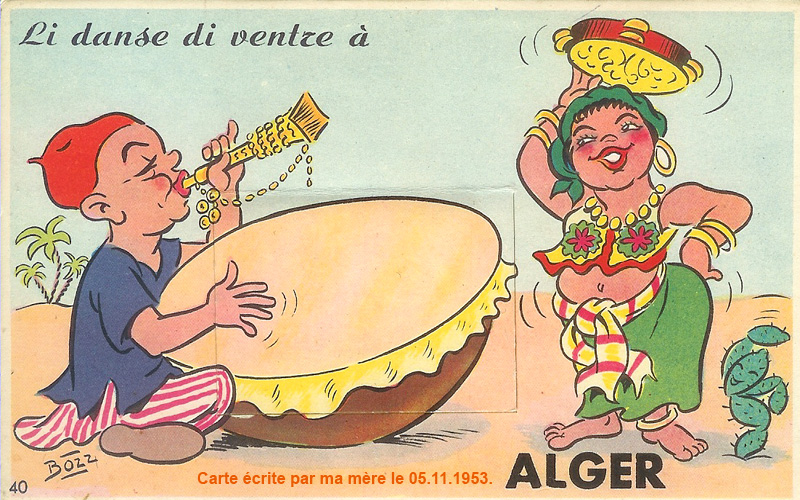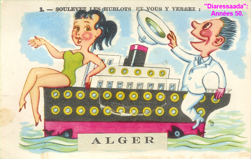 Nouvelle page extraite le 09/11/2011 de la page des cartes postales d'Algérie: Quelques "cartes à système" d'Alger, mais aussi de diverses villes d'Algérie. Les plus caractéristiques sont signées BUZZ et éditées par CAP (Cie des Arts Photomécaniques) de Paris.