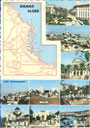 Cartes postales comportant des parties de cartes géographiques de l'Algérie (Algérois, Constantinois, Oranie, Sud-Algérien), une série des Éditions Garnier de Saint-Eugène avec des plans de villes encadrés par diverses vues (Grand Alger, Kabylie, Bougie, Sétif, Constantine, Bône, Oran) ou "La Route du Sahara" depuis Alger, Philippeville, Bône ou Oran). Enfin une série de la Cie des Arts Photomécaniques de Paris représentant un certain nombre de départements d'Algérie entourés de diverses vues, à l'exception d'une carte des Éditions Garnier (Bougie); cette série se trouve aussi dans le texte présentant les Églises d'Algérie et la population des départements.