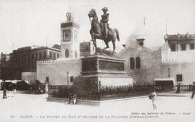 Je ne savais pas que la statue équestre du Duc d'Orléans érigée à Alger sur la place du gouvernement, devant la superbe mosquée de la pêcherie, trônait maintenant à Neuilly sur Seine, aux portes de Paris. | |||||||||||||||||||||||||||||||