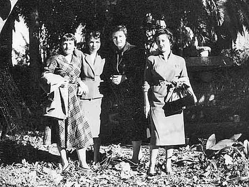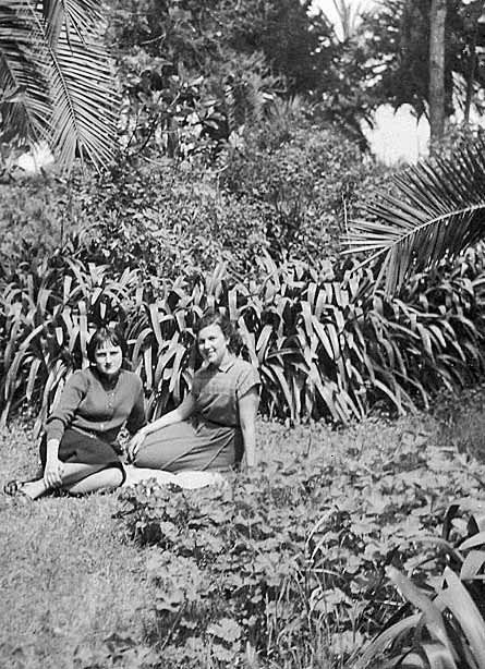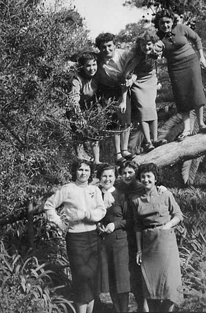 ![]() Oranaises et Algéroises dans les arbres. Yvonne TRAMU sur le tronc |