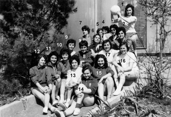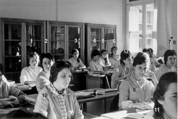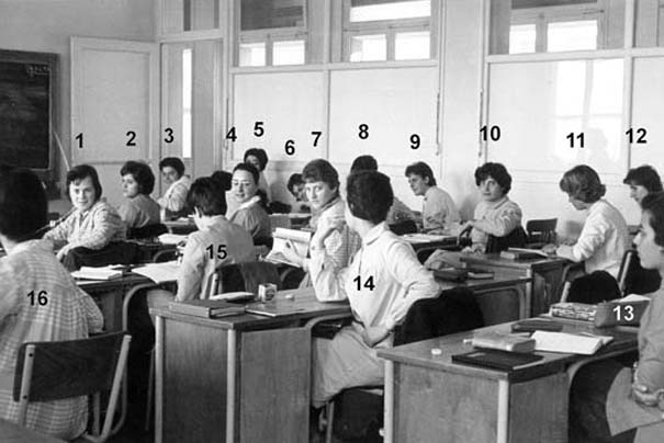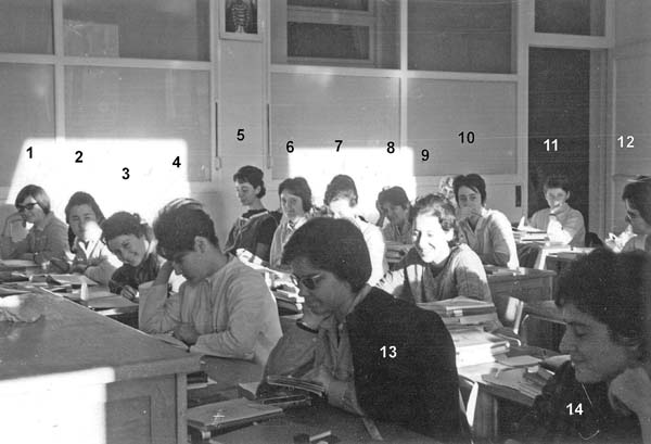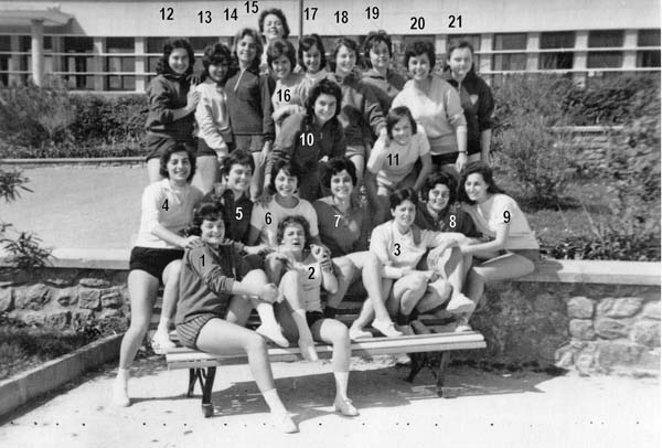 ![]() 1- Simone.SARDA 2- Suzanne.MOLL 3- 4- 5- Michele.PELLEGRI 6- Michéle BEILLE 7- Odile. MARY 8- Jacqueline.LEBAZ 9- Monique.CASTRICK 10- Nicole.DIEZ 11- Évelyne. DUCY |