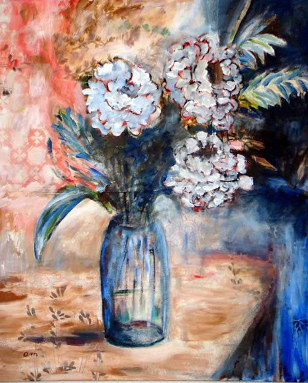 « Peinture et lecture sont mes passe-temps favoris. Je peins à l’huile, en à-plats, en touches ou avec des matériaux composites (papier ou tissu collé, pâte de verre ou de blanc de Meudon). J’aime les couleurs vives, les contrastes forts. Je m’inspire parfois de photos et il m’arrive de jouer avec les déformations que me procure un logiciel de traitement d’image. On me dit souvent que ma peinture va dans tous les sens et il est vrai que je ne suis pas à la recherche d’un style ou d’un réalisme ou d’une création pure, j’essaie seulement de transmettre une émotion qui m’est passée par la tête. Mais la peinture n’est pour moi qu’un passe-temps solitaire qui entre en compétition avec la lecture de romans et d’essais au sujet desquels je communique en toute convivialité avec un groupe de ma ville (https://www.lireensembleasaintmaur.fr/). Le monde des livres est immense et je voudrais rattraper tout ce temps où le travail m’a empêchée de l’explorer. » Anne-Marie |