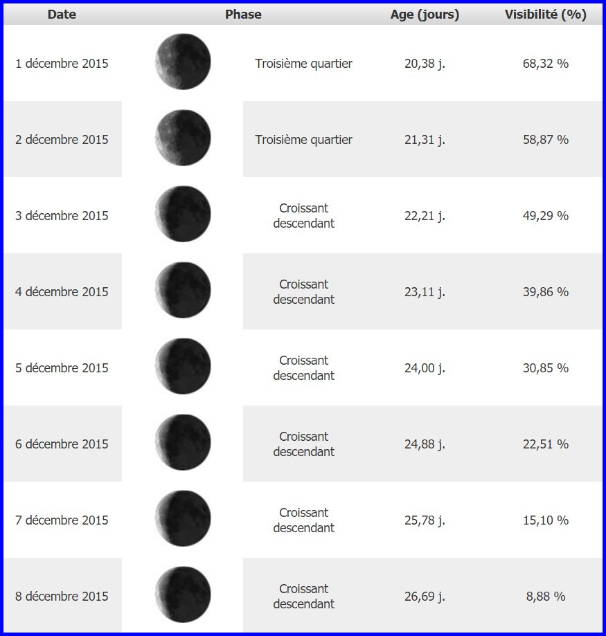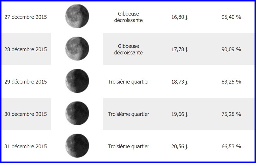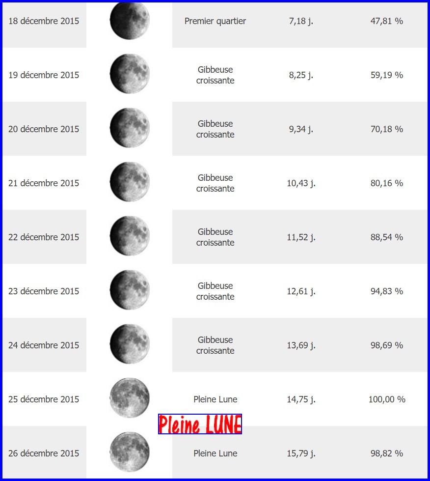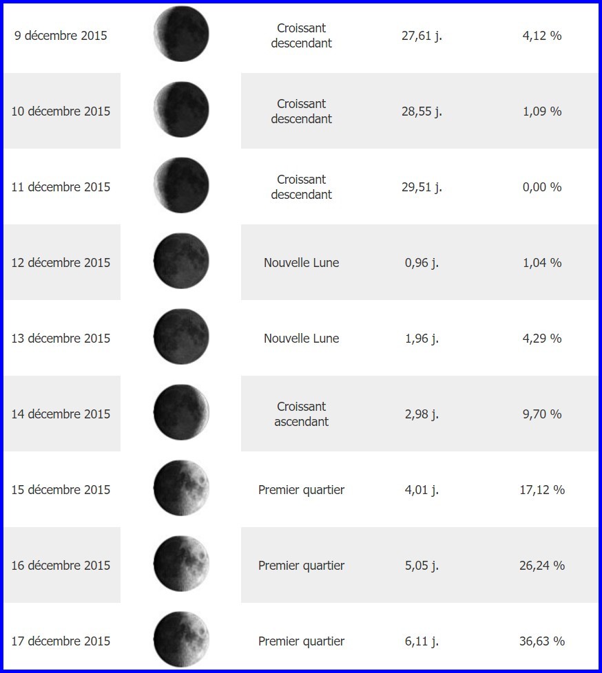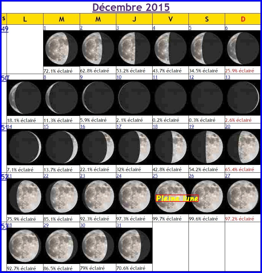Phases de la lune en DECEMBRE 2015