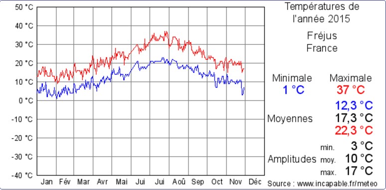 Graphique des Températures à FRÉJUS: