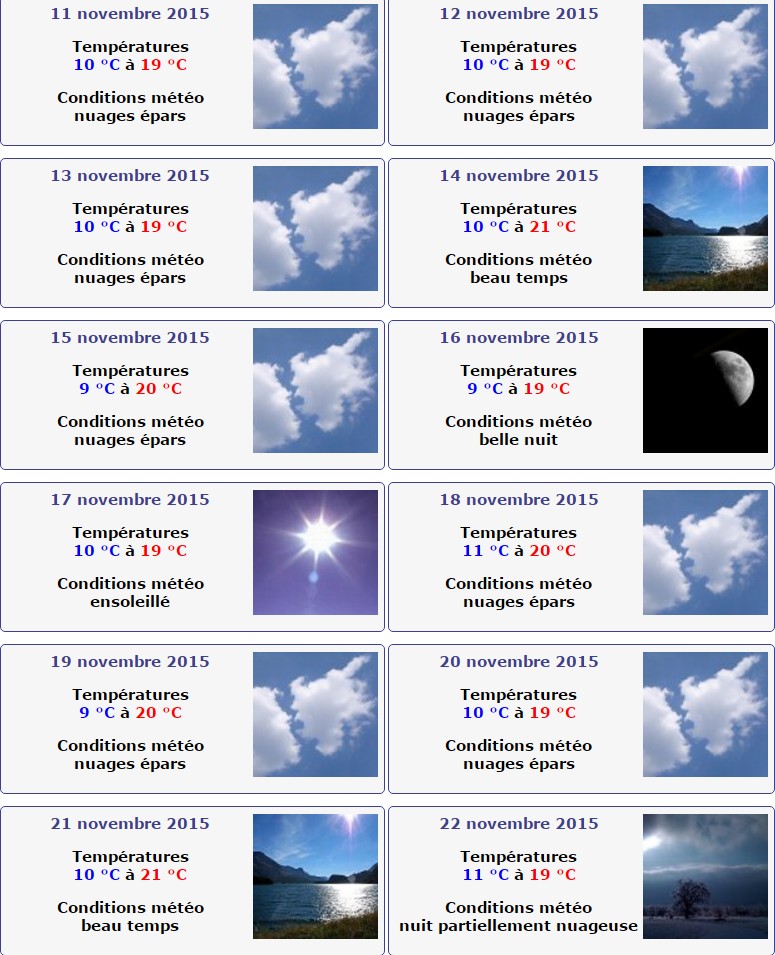 Avant de vous donner les prévisions météo de Décembre 2015, regardons, si vous le voulez bien dans ma région, le temps observé en Novembre 2015 :