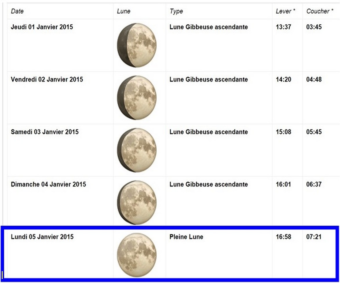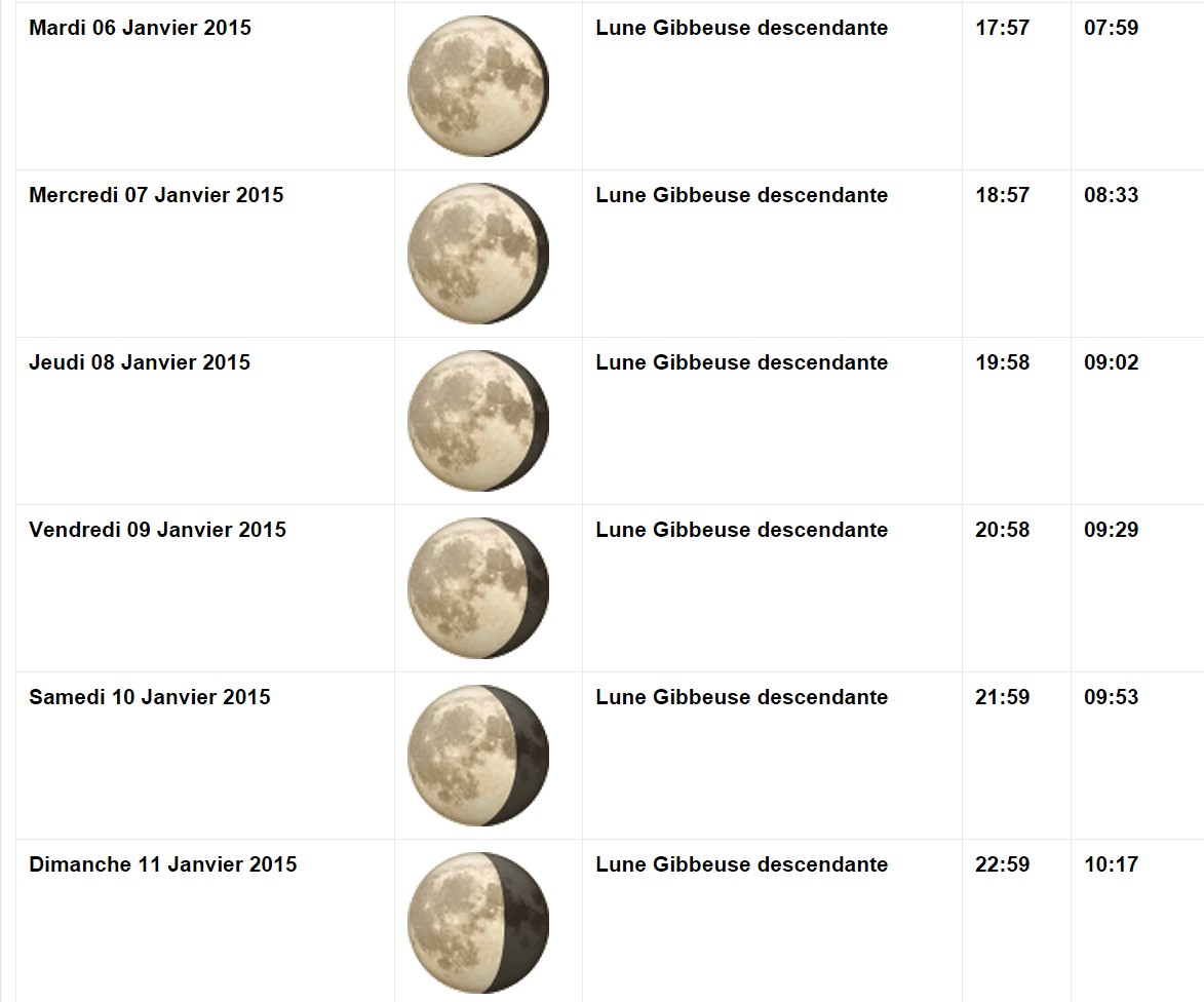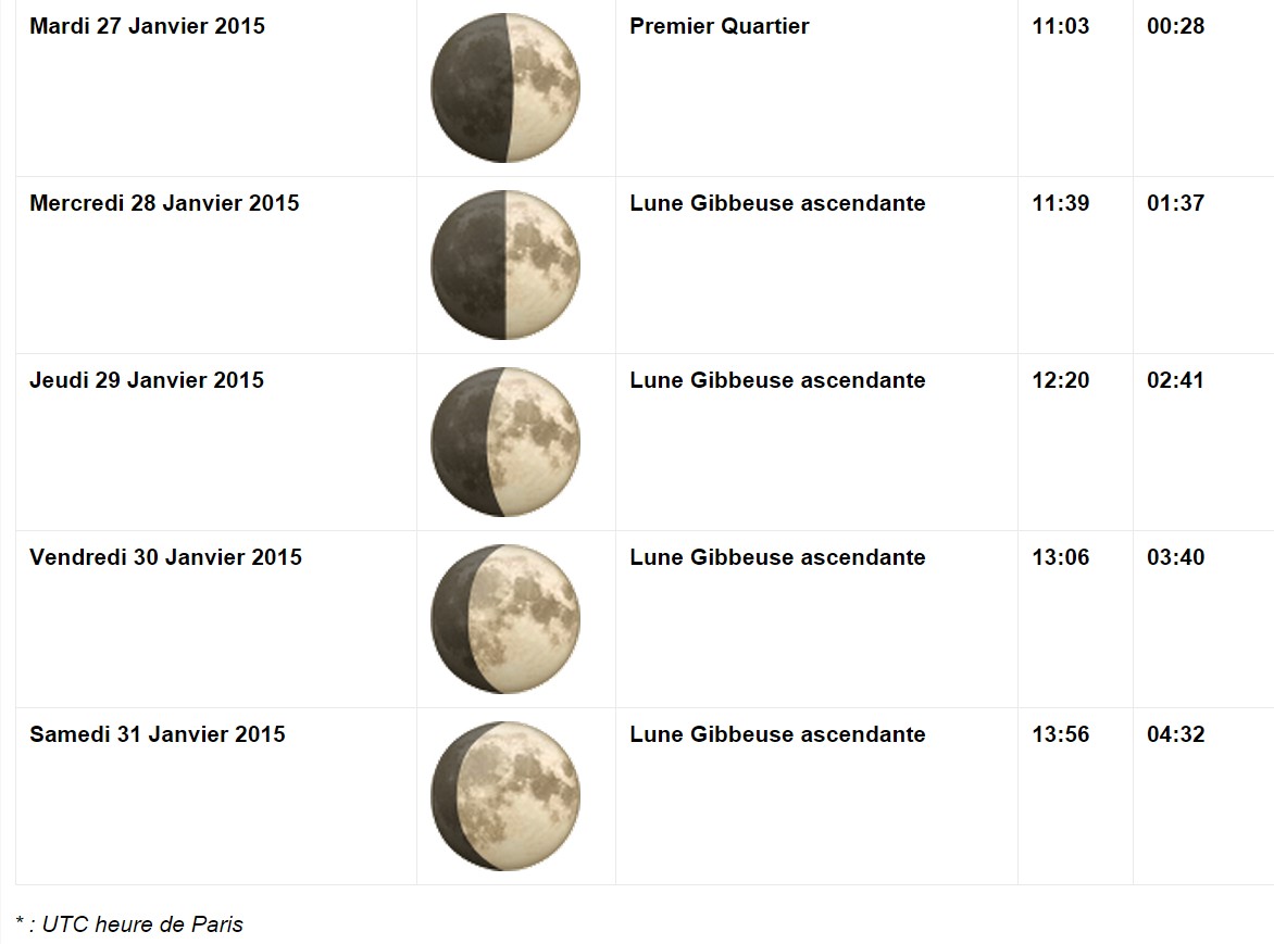 Phases de la lune en JANVIER 2015