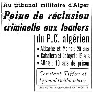 [ii] Contrairement à ce qu’une partie de la presse de l’époque laissait entendre car, elle avait tendance à parler d’une collusion du FLN avec les communistes, les choses étaient plus compliquées.
