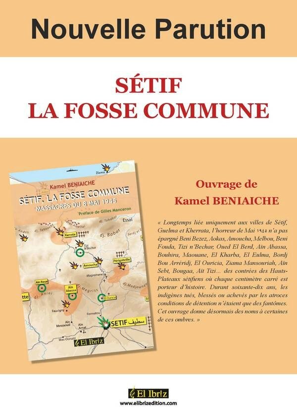 Les événements de mai 1945 à Sétif continuent d’être l’objet de publications. Bien souvent ces ouvrages ne font que répéter des légendes ou des écrits cent fois relatés. Le livre que nous livre Kamel Beniaïche, journaliste d’El Watan, né à Sétif n’est pas de ceux-là. Il donne la parole à une cinquantaine de témoins, qui livrent leurs souvenirs de cette période. On s’attend à la révélation de détails inédits.