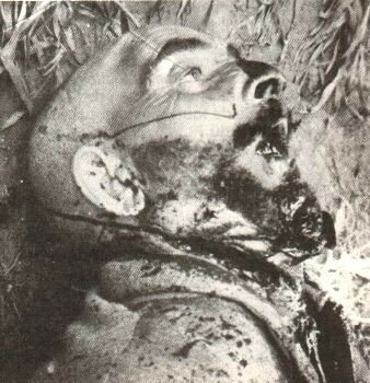 Des femmes sont poignardées dans le dos, des hommes sortis de leur cache également. Les photos montrant des corps mutilés - particulièrement des enfants alignés sur la terre battue - prouvent la violence employée par les insurgés. Entre temps la troupe est intervenue grâce au directeur de la mine, "marathonien miraculé" arrivé au pas de course à travers bois et dunes au camp Pehau, centre d’instruction militaire à dix kilomètres sur la plage. Aidée de l’aviation, elle riposte en anéantissant les insurgés attardés sur le terrain, abandonnés par les maquisards en fuite. Le beau livre de témoignage de Louis Arti (1) restitue l’atmosphère et les sentiments des humains assiégés et terrorisés, ayant perdu trente-cinq de leurs proches.