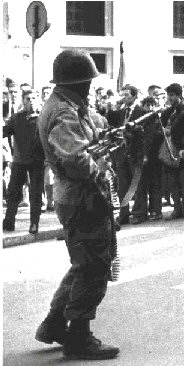 quelques minutes, des soldats armés de mitrailleuses A.A. 52,