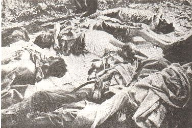 they counted more than 300 corpses and 150 wounded. The smell of death was