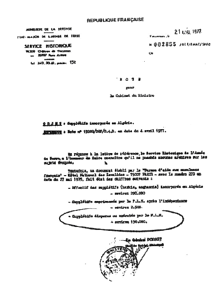 -Effectif des supplétifs (harkis, moghaznis) incorpores en Algérie