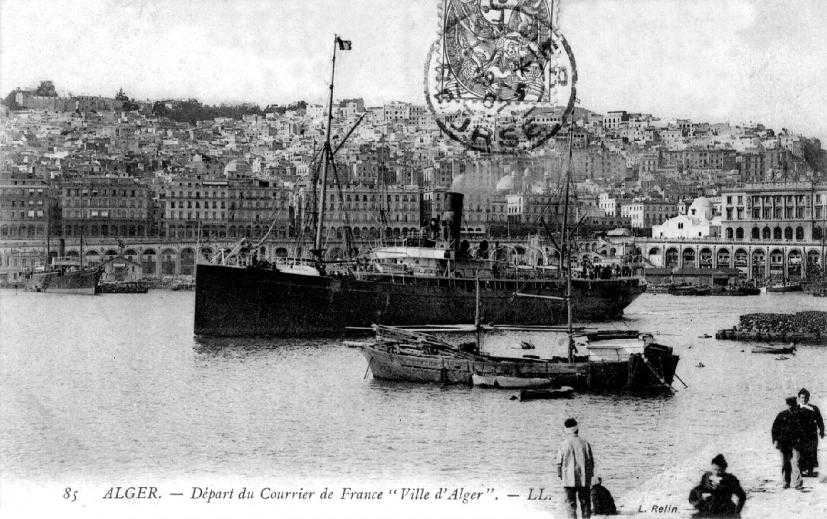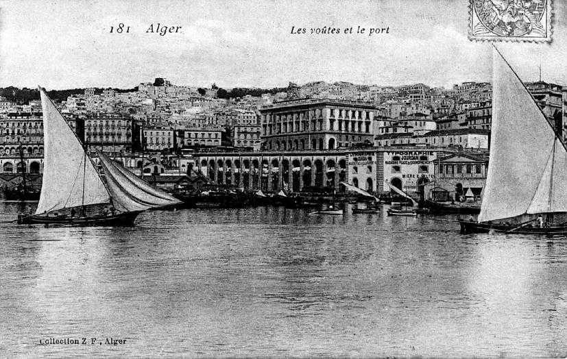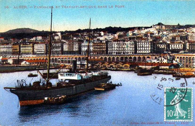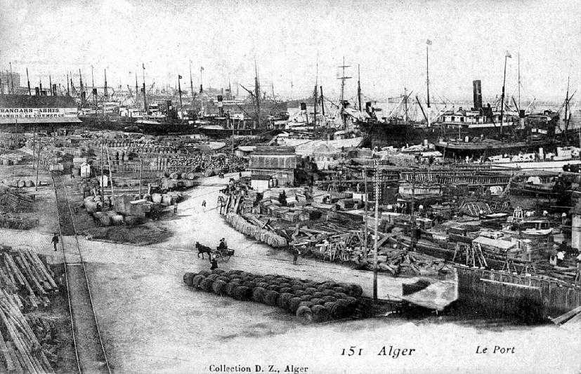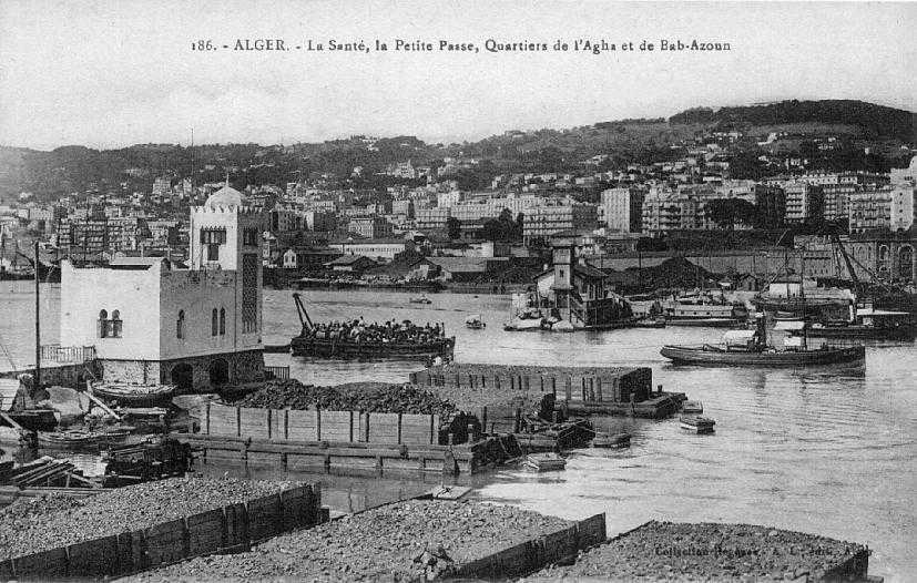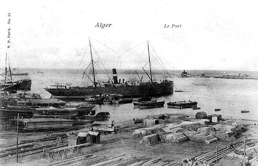 Bateaux de pêche Le port et la grande mosquée Sur le pont d'un steamer de la C.G.T. Port, Amirauté et station de la Transatlantique Débarcadère de la C.G.T. Les chantiers de construction et le port La Douane Le port et les bureaux de la Douane Le port Débarquement de gargoulettes Vue générale des quais Les quais Le port à contre jour Le port et la ville Le port Les quais Le transport de l'Etat ''le Mytho'' Panorama et transatlantique dans le port La Santé, la Petite Passe, quartiers de l'Agah et de Bab Azoun Le port vu de la Casbah Le port vu de la Casbah La ''Santé'' Départ du courrier de France ''Ville d'Alger'' Le port Les voûtes et le port Le port