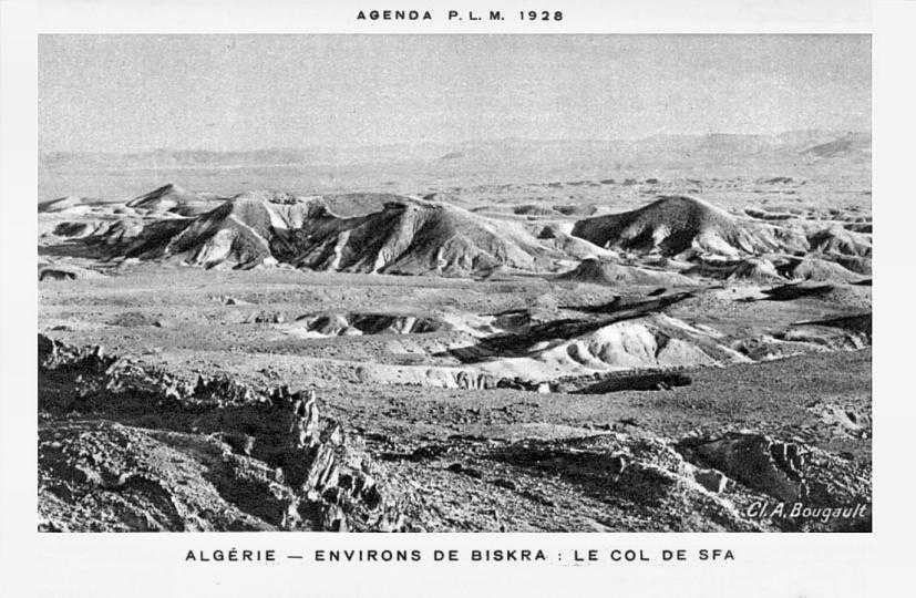 Le col de Sfa dans les environs de Biskra Une rue à Biskra Une rue à Biskra Bou Saâda le soir Bou Saâda : le tombeau de Dinet El Kantara La mosquée d'el Oued Figuig Ougaghir : la mosquée Ghardaïa Ghardaïa Laghouat : le marché arabe Marché dans le sud Ouargla Toggourt Le vieux Biskra Le vieux Biskra