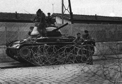 A 22 h. 35, un convoi de blindés se dirige vers la Délégation générale en passant par la rue Berthézen.