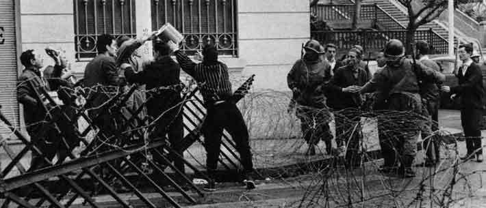 L'Avenue de la Bouzaréa, une fois encore, fut la plus durement touchée. Tous ses magasins furent pillés. Les gendarmes mobiles, à défaut d'armes, de munitions ou de « tueurs » s'emparèrent de tout ce qu'ils purent rencontrer, dévalisant en particulier le « Monoprix », brisant les devantures de toutes les Boutiques, bouleversant, saccageant, piétinant, écrasant tout, emportant pêle-mêle des chaussures chez Pons, des vêtements masculins ou féminins chez Hadrien, Jules, Roselyn. Les coiffeurs, oui même les coiffeurs ne furent pas épargnés. Symboles et gardiens de l'ordre ces ombres qui dans la nuit, sous la pluie fine s'agitent inutilement, bourrant leurs poches de treillis, d'eau de Cologne, de parfums, shampoings et autres, ou images d'un autre temps ? De toutes manières cet affligeant spectacle ne devait être qu'une préfiguration de la conduite de ces mêmes gardes mobiles lors des visites domiciliaires qui allaient suivre. Ce qu'ils firent dans l'ombre comme des malfaiteurs de bas étage, ils osèrent le répéter le lendemain et les jours suivants en pleine lumière.