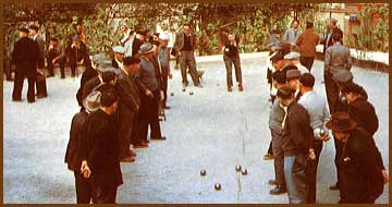 le travail. Pedro, qui se lève tôt, se couche également tôt, mais il réserve certaines heures de ses soirées aux activités musicales et sportives, qui sont multiples à Bab-el-Oued. Accordéoniste, il répète avec les autres membres d'un petit orchestre dans une cave dont les voûtes ne sont pas assez profondes pour étouffer les flonflons, qu'on entend, et de loin, dans la nuit. Membre du bureau directeur d'une société de joueurs de boules, il passe, parfois, après dîner, " au bureau " pour régler les problèmes de cotisations, de constitution des quadrettes et de calendrier de championnat. Des lourdes responsabilités lui permettent de tenir bon pendant les mois d'hiver, où le ciel, il pleure la pluie, et d'arriver, avec un moral élevé, au temps chaud, marqué par deux exercices essentiels, la sieste et le bain. La sieste, explique-t-il, c'est bon avant, pendant et après. Avant, parce que, pendant que je me fais mes additions, je me sens déjà que je dors. Pendant, parce que, pendant le sommeil, les forces de l'homme elles se renforcent. Après, parce que, quand Je saute du lit et que Je mets mon pied chaud sur le parterre froid, le carreau, c'est comme s'il me fait une caresse. |