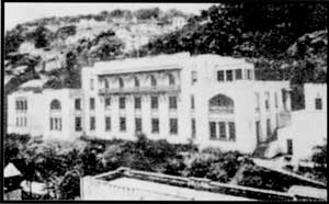 du Jardin d'Essai. Un important bâtiment blanc, sur trois niveaux,
