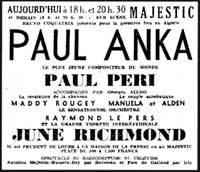Annonce spectacle de Paul Anka au Cinéma Majestic ,qui ne sera
