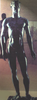 C'est en Grèce, dira-t-il plus tard, qu'il put étudier l'école des bronziers. Belmondo visita également Olympie, Athènes avec l'Acropole et le Cap Sumnium. Ce dernier paysage l'émut tout particulièrement. Belmondo obtint ensuite un prix au concours international Bolivar (projet de monument pour ce général) et le 2e prix pour son projet du monument du Centenaire à Boufarik. Il se mit dès lors à exposer régulièrement aux Tuileries. Son «Apollon» et son «Buste de jeune homme», reçurent un accueil chaleureux de la critique. Belmondo qui avait toujours eu pour modèle le grand sculpteur Carpeaux n'allait plus cesser de donner des chefs d'œuvre, excellant dans toutes les disciplines de son métier, de la médaille à la sculpture monumentale. Très fin dessinateur, Belmondo, qui aimait se rappeler souvent le conseil de Donatello: «Je peux vous enseigner d'un seul mot tout l'art de la sculpture: dessiner!», s'était révélé dès ses premiers travaux comme un statuaire et un bustier dans l'esprit gréco-latin. Abordant tous les genres, au cours de sa longue carrière, du sacré au profane, avec une maîtrise égale, il fut un très grand artiste classique. |