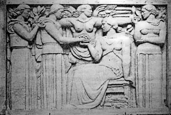 ![]() L'Algérie recevant les fruits du Travail , bas relief pour le" Foyer Civique" du Champ de Manoeuvre à Alger. |