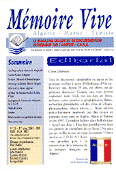 Centre de Documentation Historique sur l'Algérie. Edite un Magazine Mémoire Vive. Directeur de la publication : Gérard Cénac. Comité de rédaction: John Franklin, Elisabeth Cazenave, Georges Hirtz. Au prix de 3,74 €. Comment adhérer au CDHA. CHARGER LE BULLETIN D'ADHESION Charger le bulletin d'adhésion au format Acrobat Reader, et l'adresser par courrier au : Centre de Documentation Historique sur l'Algérie. Maison du Maréchal Juin. 29 Av. de Tubingen 13090 Aix-en-Provence. Téléphone : 04.42.52.32.89. Télécopie : 04.42.59.41.08. |